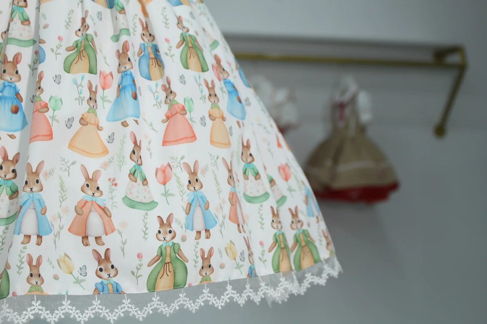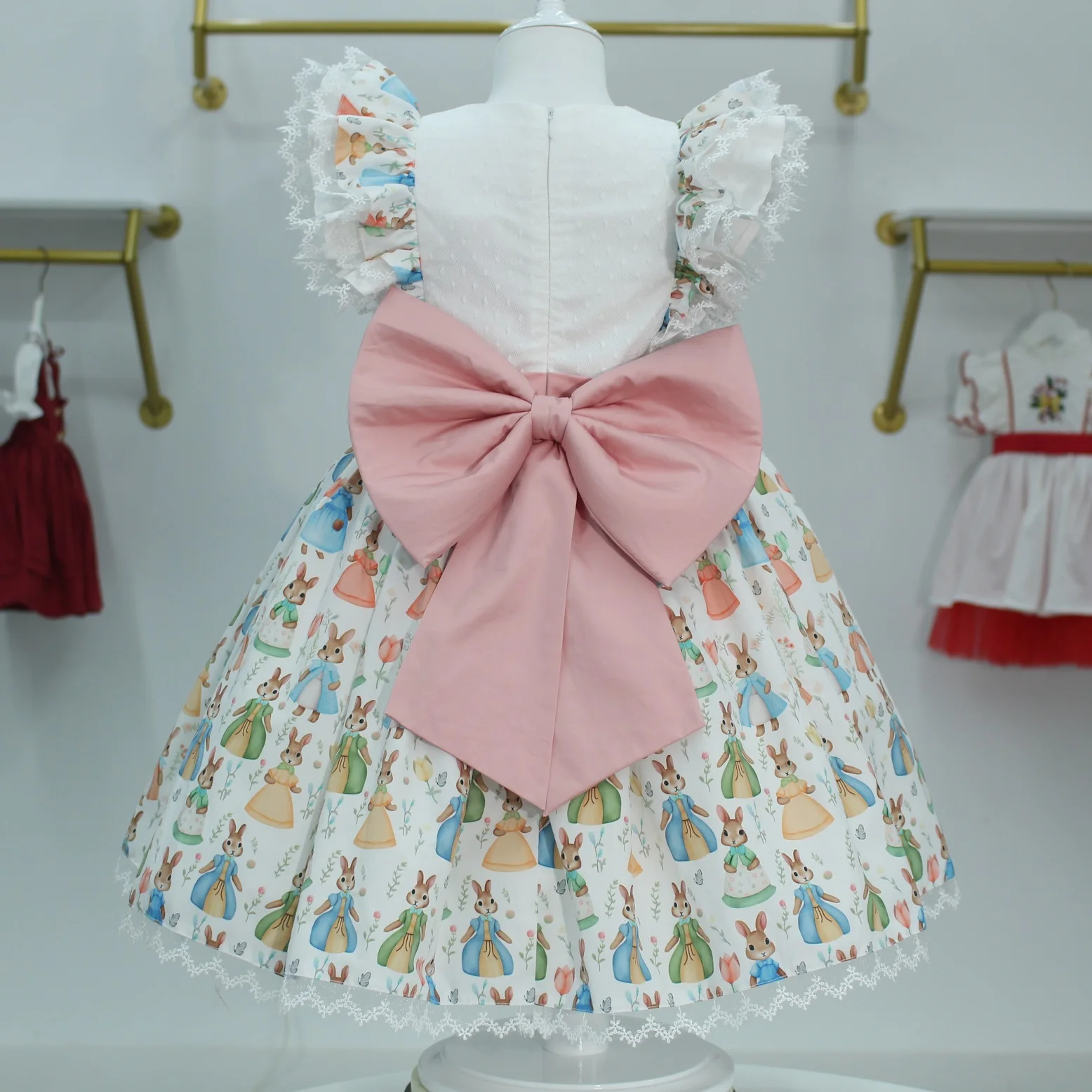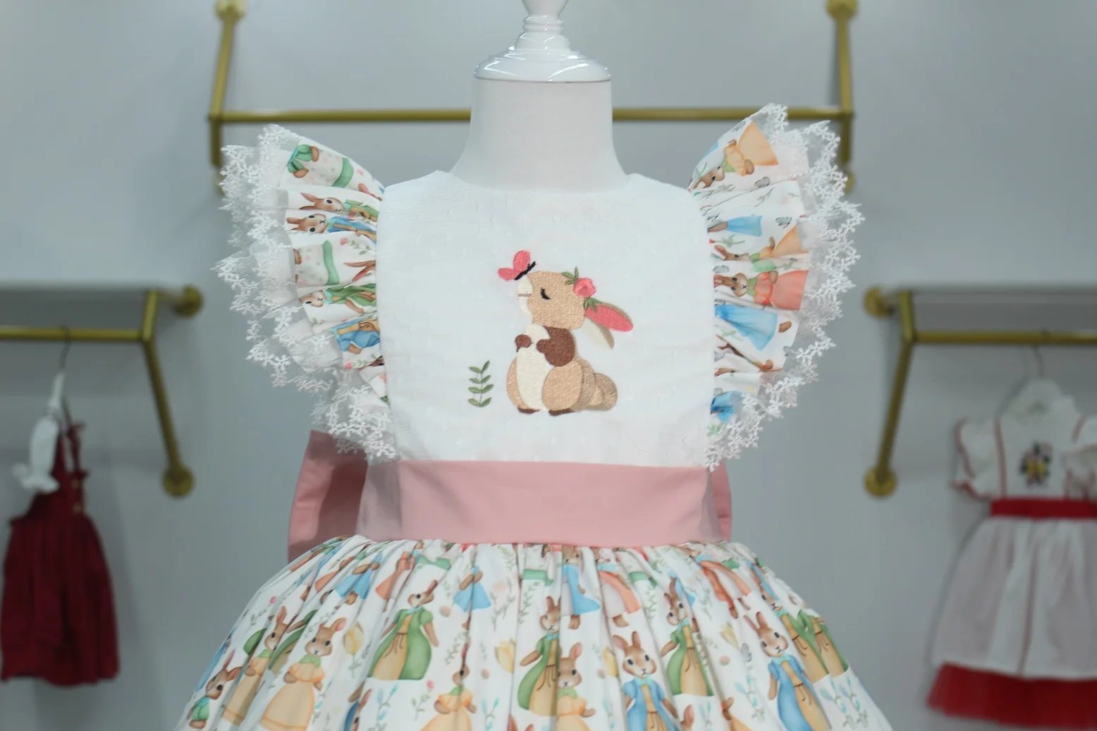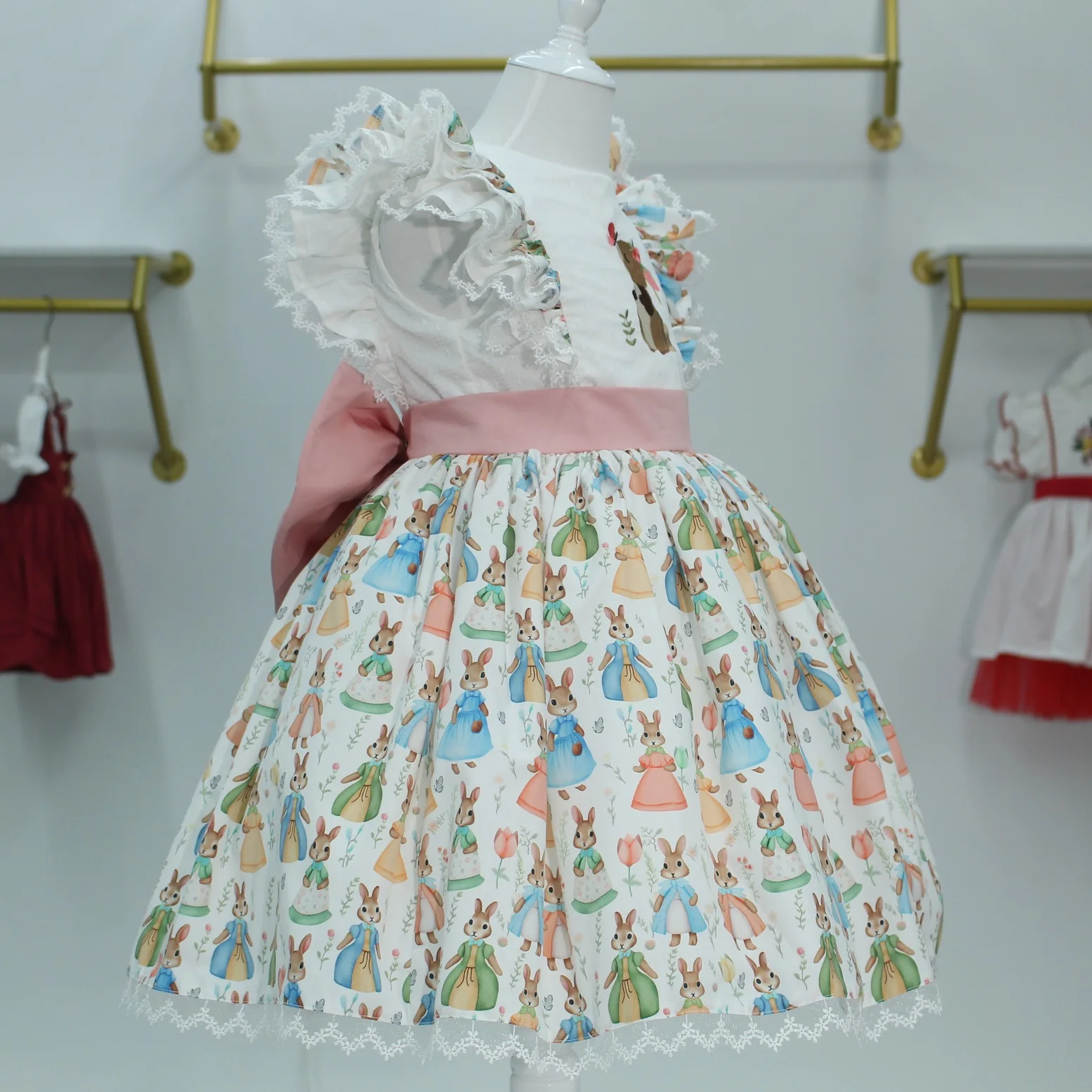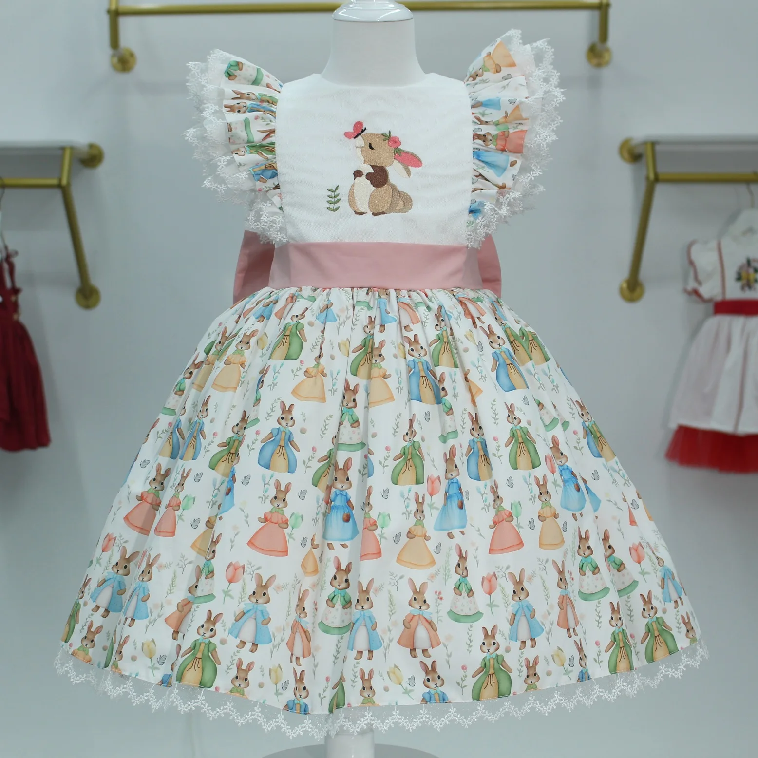 0-12Y Baby Girl Rabbit Embroidery Vintage Princess Dress for Holiday Birthday Photography B305