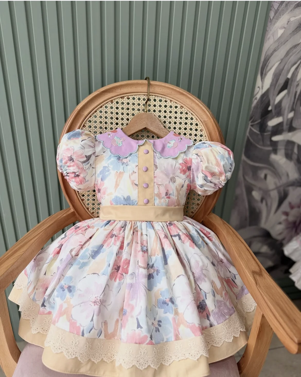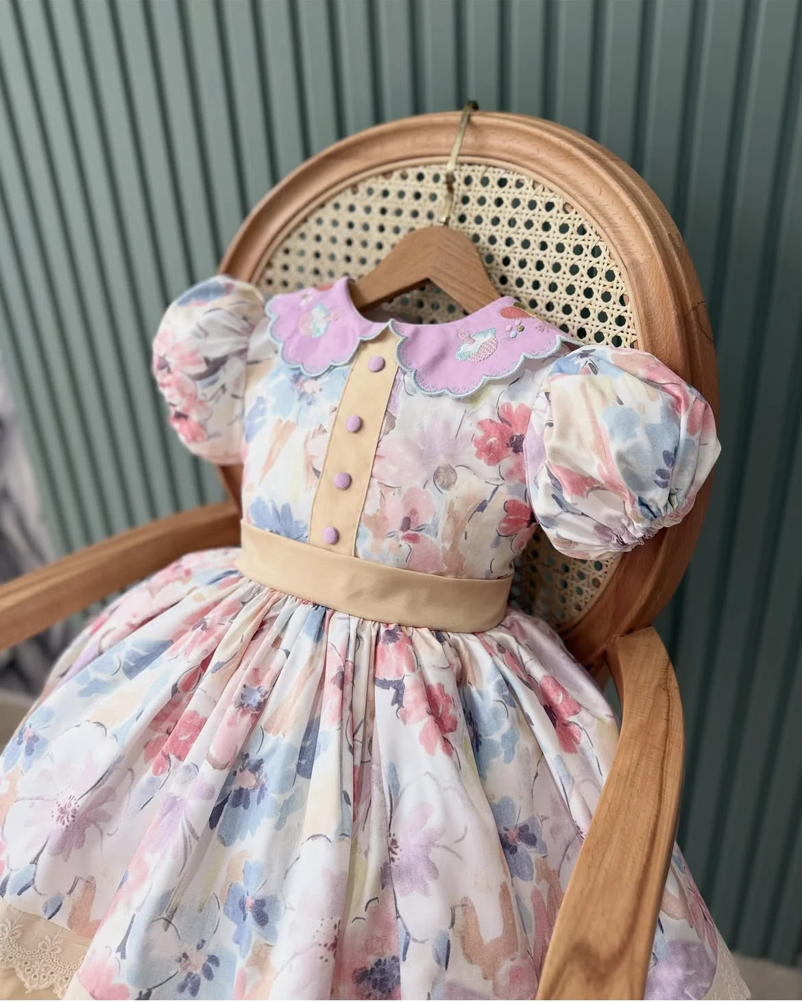 0-12Y Baby Girl Summer Collar Embroidery Vintage Princess Ball Gown Floral Dress for Party Eid Birthday Photography Causal B90