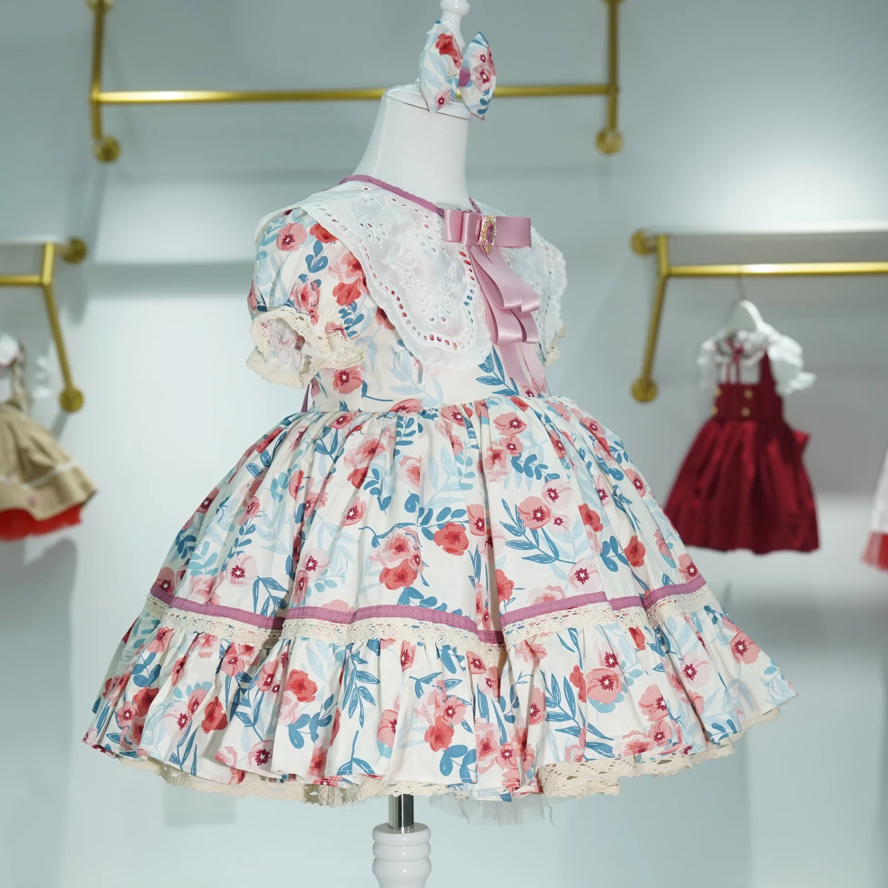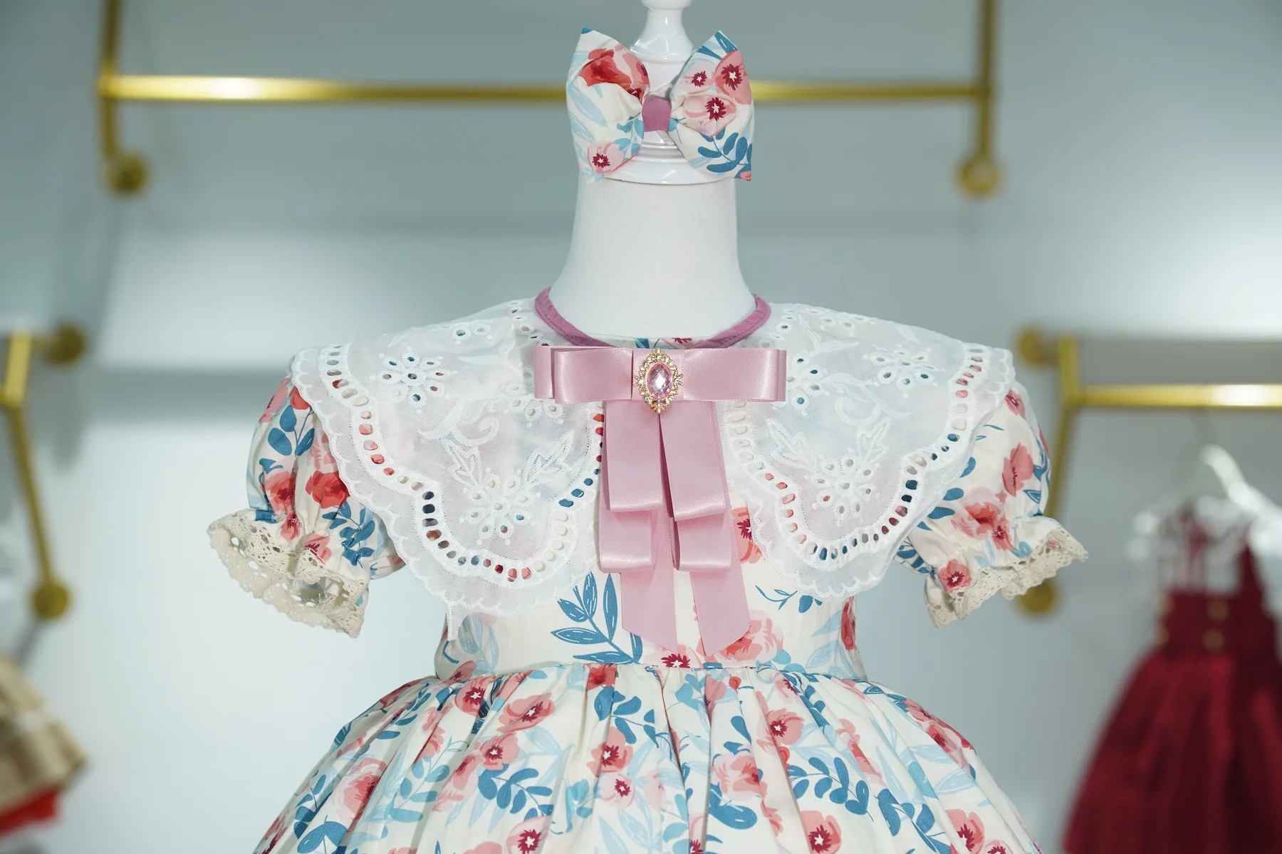 0-12Y Baby Girl Summer Floral Printed Vintage Princess Dress for Birthday Holiday Photography Casual B36