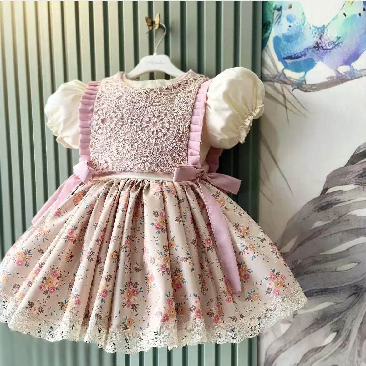 0-12Y Baby Girl Summer Pink Floral Vintage Princess Ball Gown Dress for Party Eid Birthday Photography Casual B120