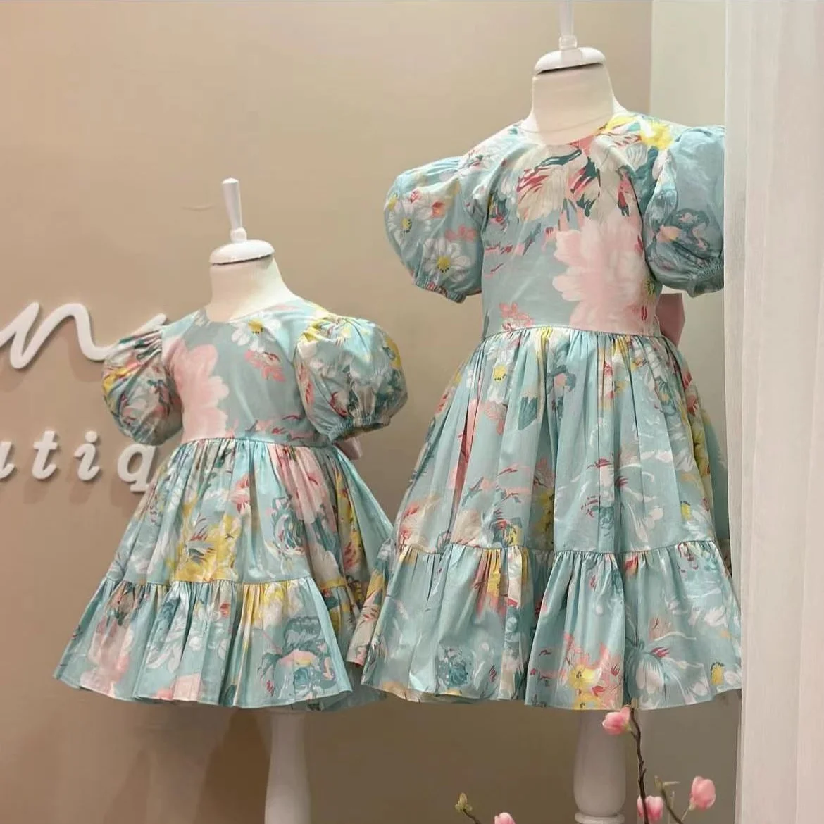 0-12Y Baby Girl Summer Rose Floral Blue Turkish Vintage Lolita Princess Ball Gown Dress for Birthday Holiday Casual Eid B221