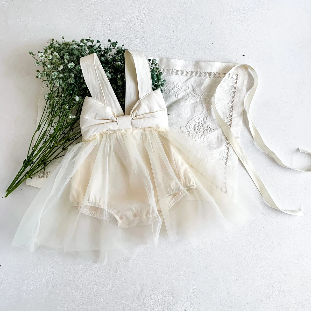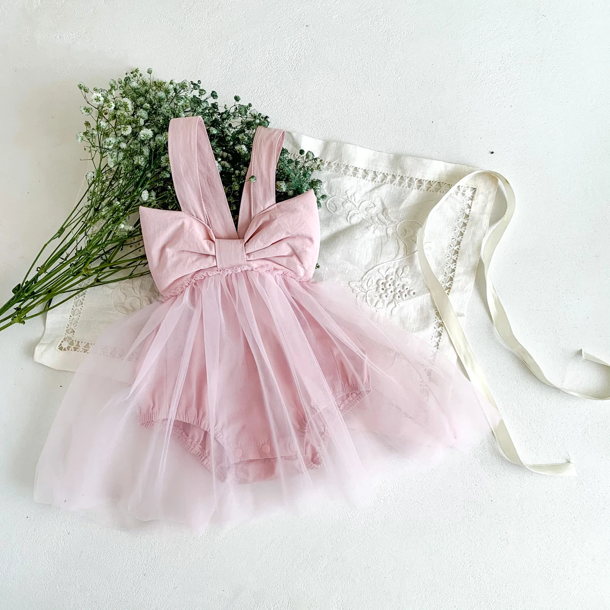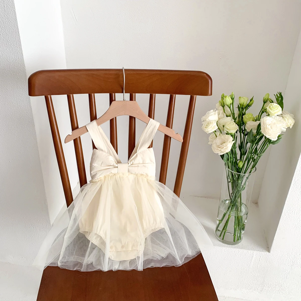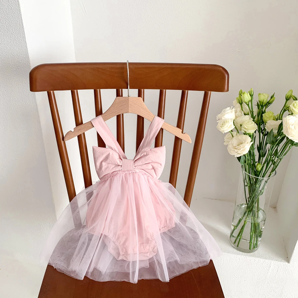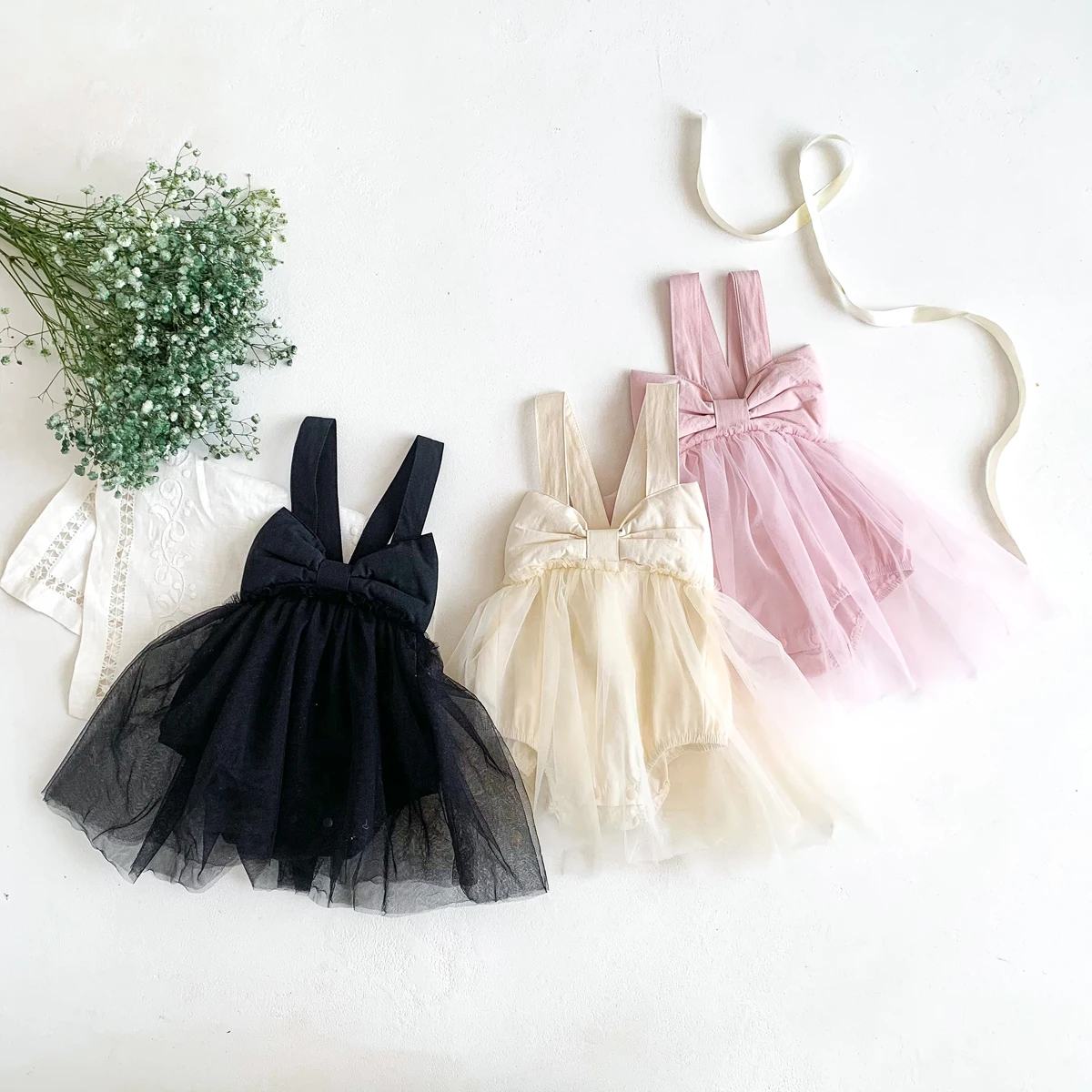 0-2 Years Old Baby Girls INS Ballet Romper Mesh Dress Big Bow Tie Jumpsuit Cute Kids Bodysuit Fashion Clothes
