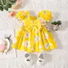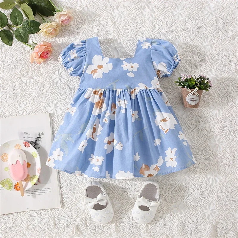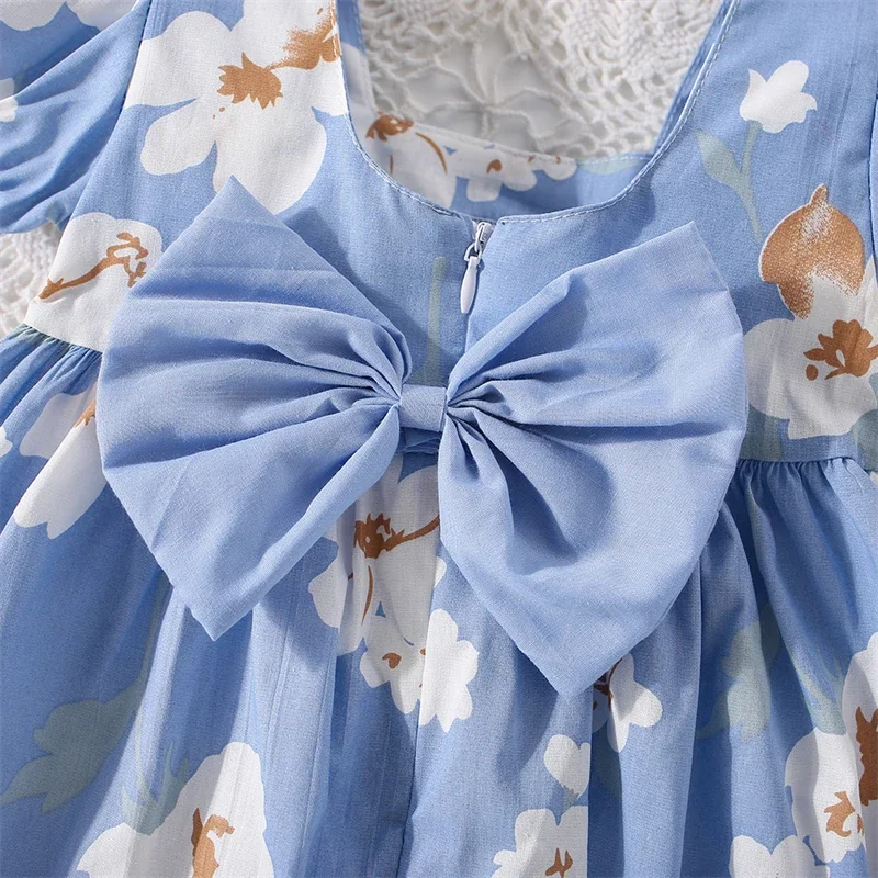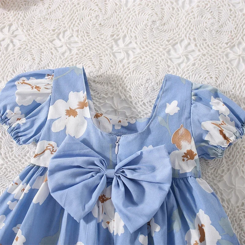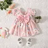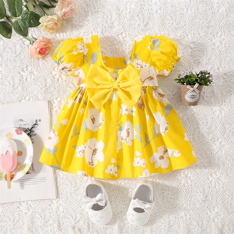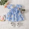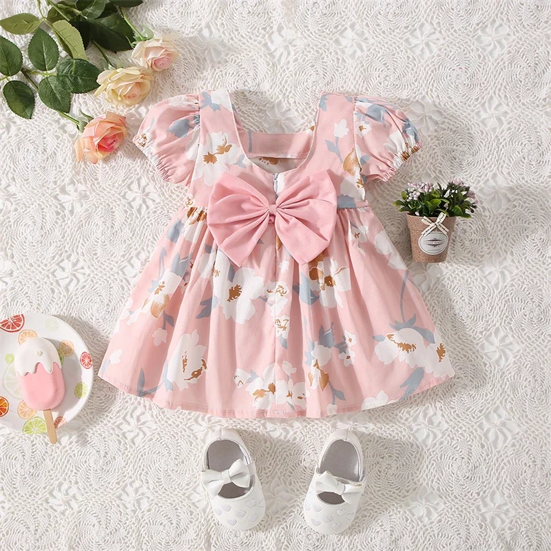 (0-3 Years Old) Girl Baby Girl Cotton Bow Bubble Sleeve Princess Dress Cute Flower Print Dress