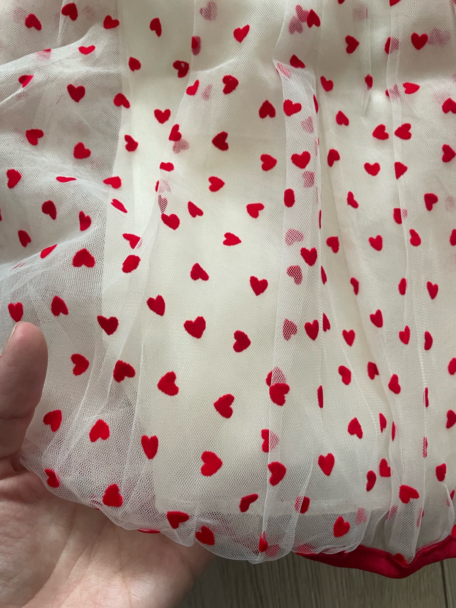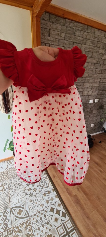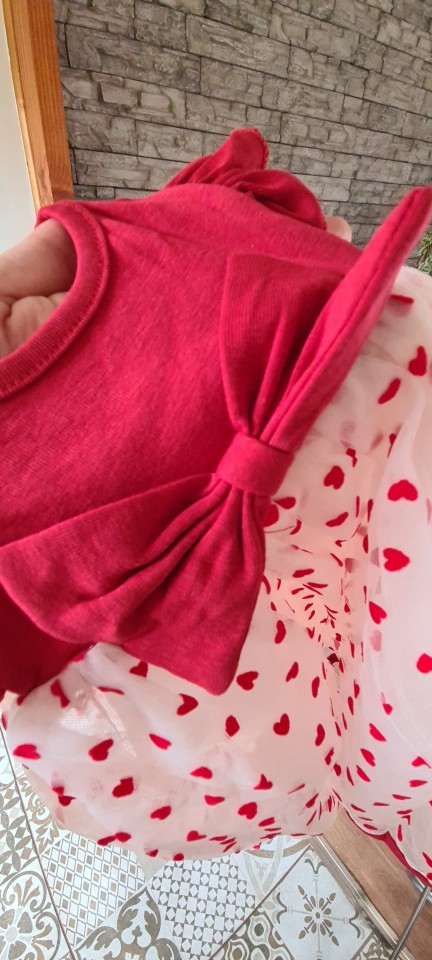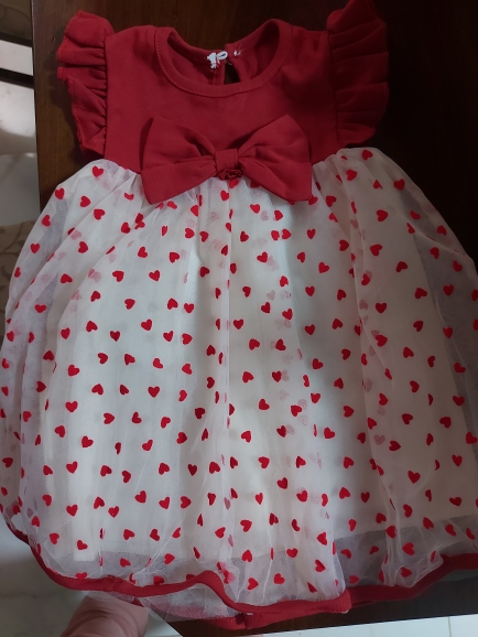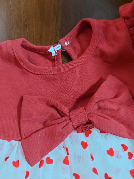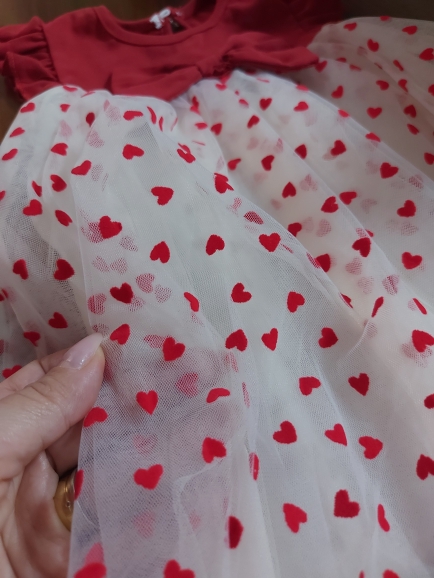 It is very beautiful, the top is cotton and the heart details are simply Precious