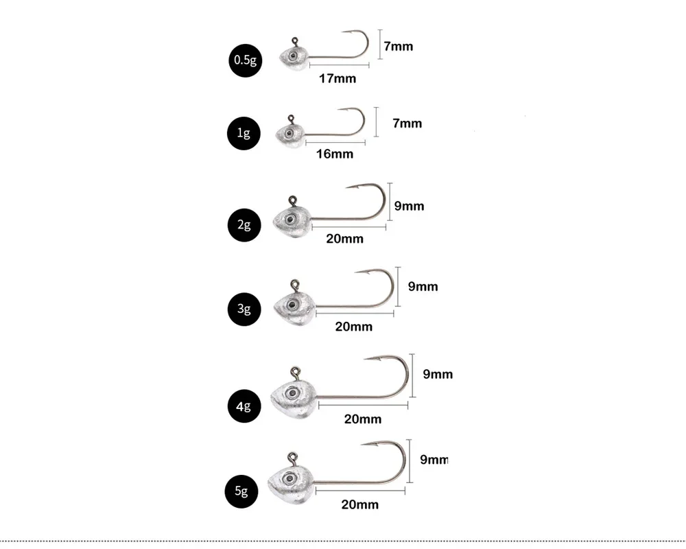 0.5g 1g 2g 3g 4g 5g Lure Hook Grouper Crank Jig Head Hook with Lead Soft Worm Bait Hook Fish Hook Ultra Light Fishing Tools