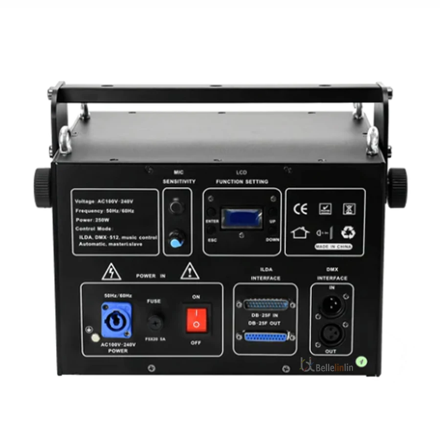 Control interface: international ILDA DB25 interface, international DXM512 , can connect with American pangolin laser software and tiger, pearl, MA controller,etc.