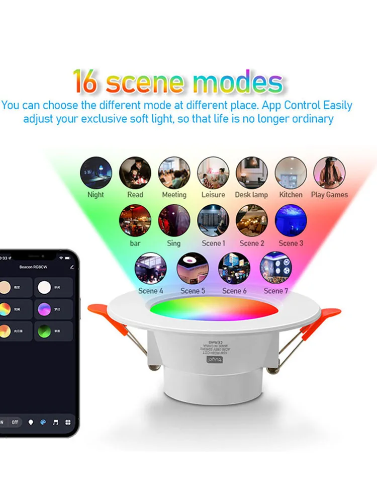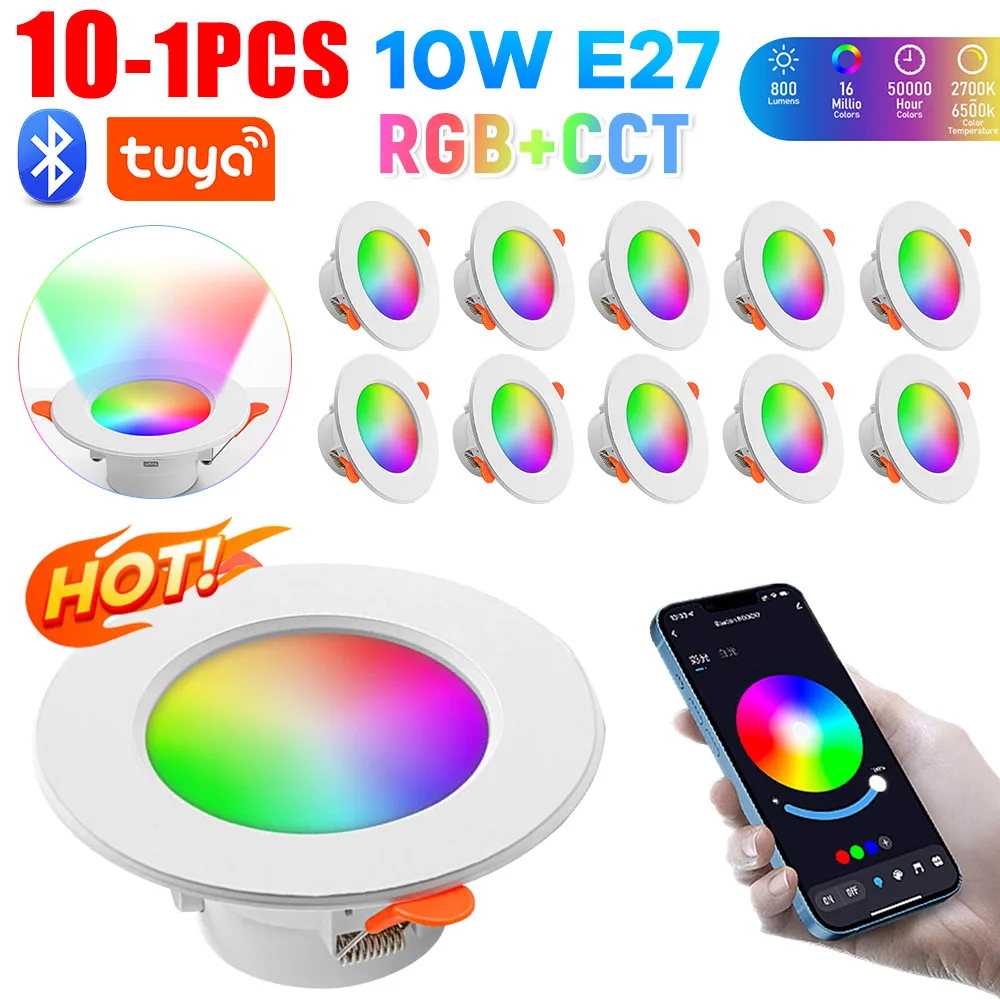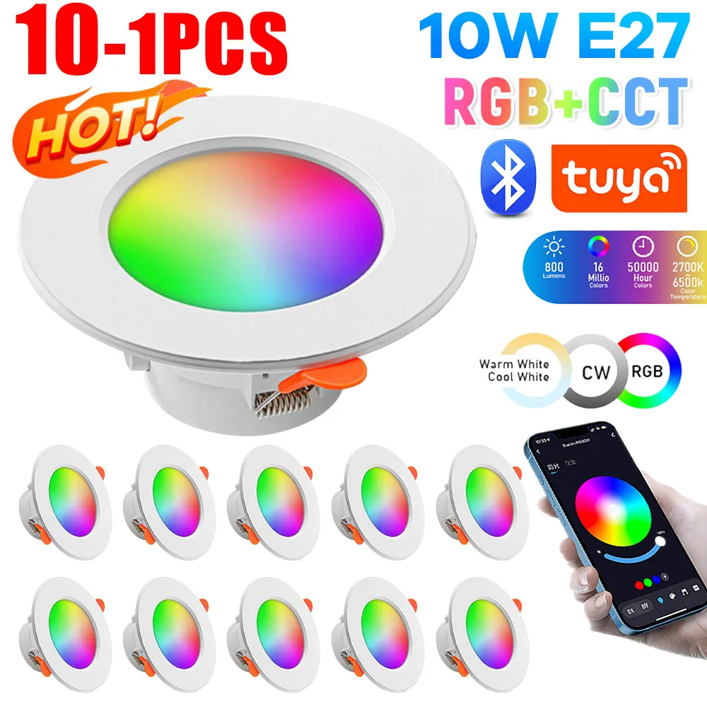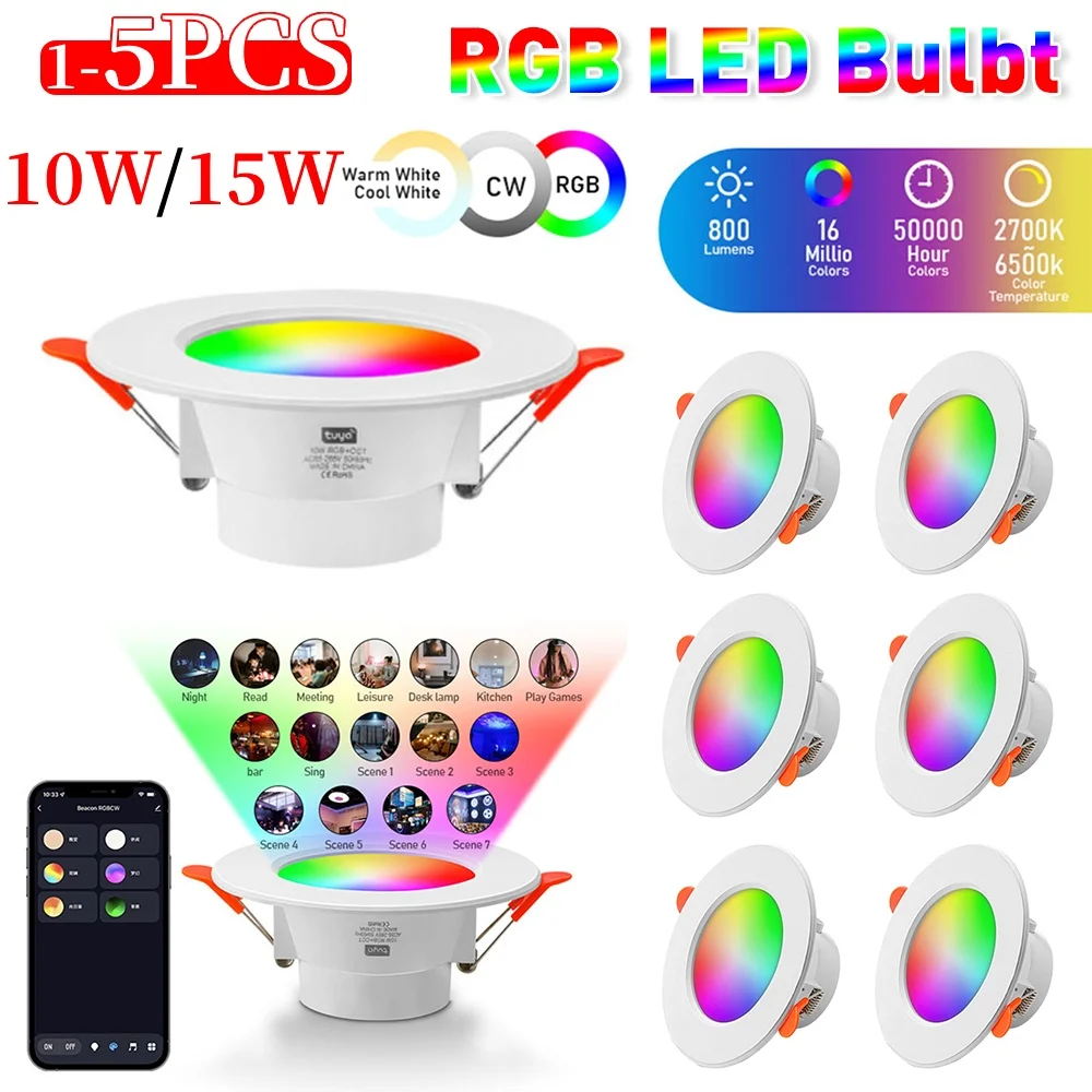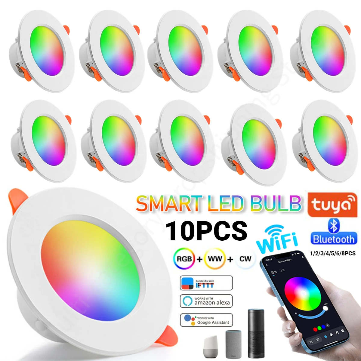 1-15PCS RGB LED Downlight RGBW+CW+CCT Dimmable Spotlight 10W Bluetooth Smart Ceiling Light Voice Control for Alexa Google Home