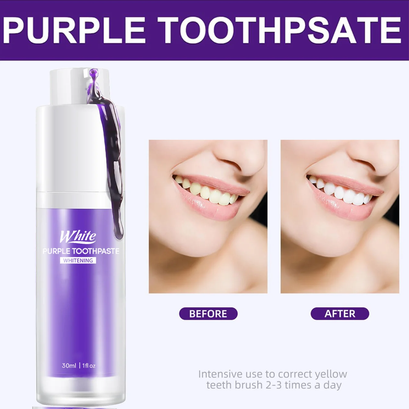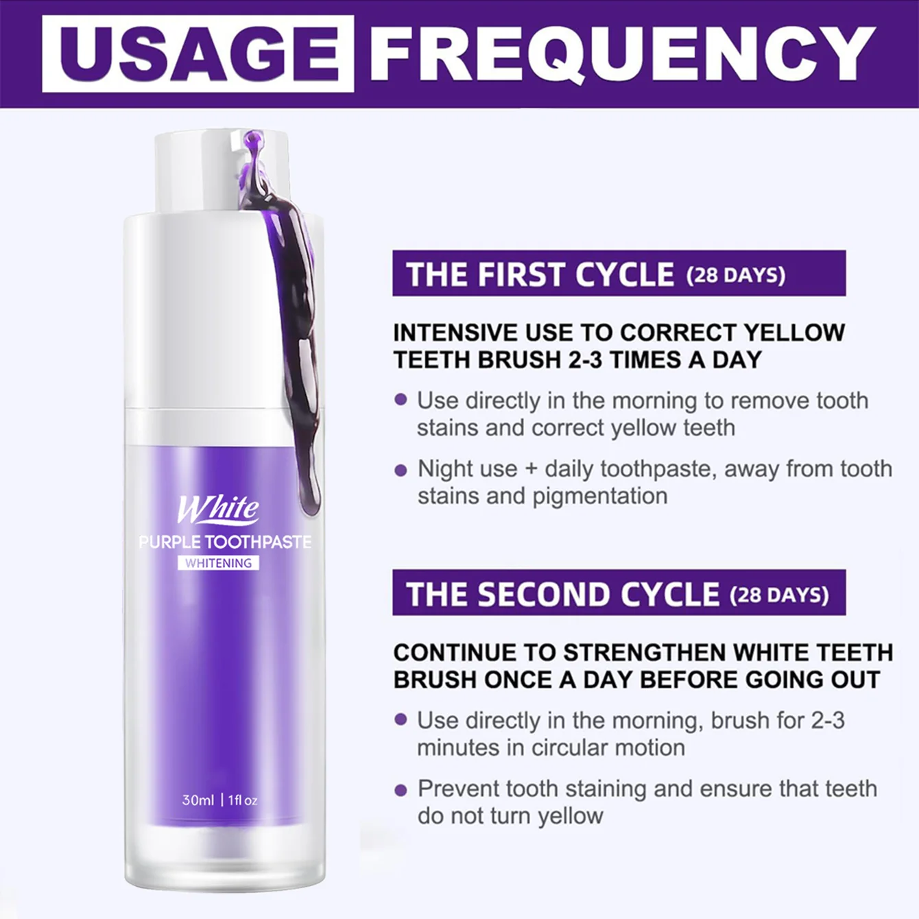 1/2/3/4Pcs Purple Brightening Toothpaste Teeth Whitening Toothpaste Color Corrector Serum Deep Cleaning Teeth Fresh Breath Oral