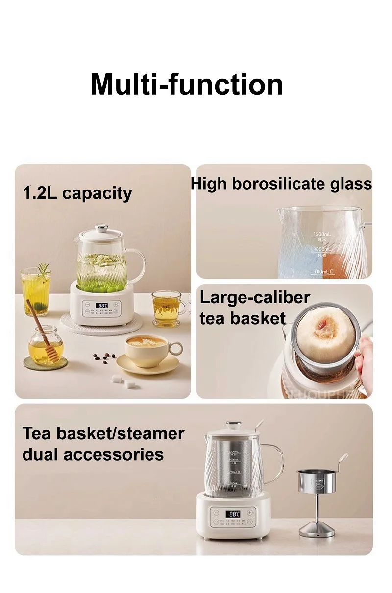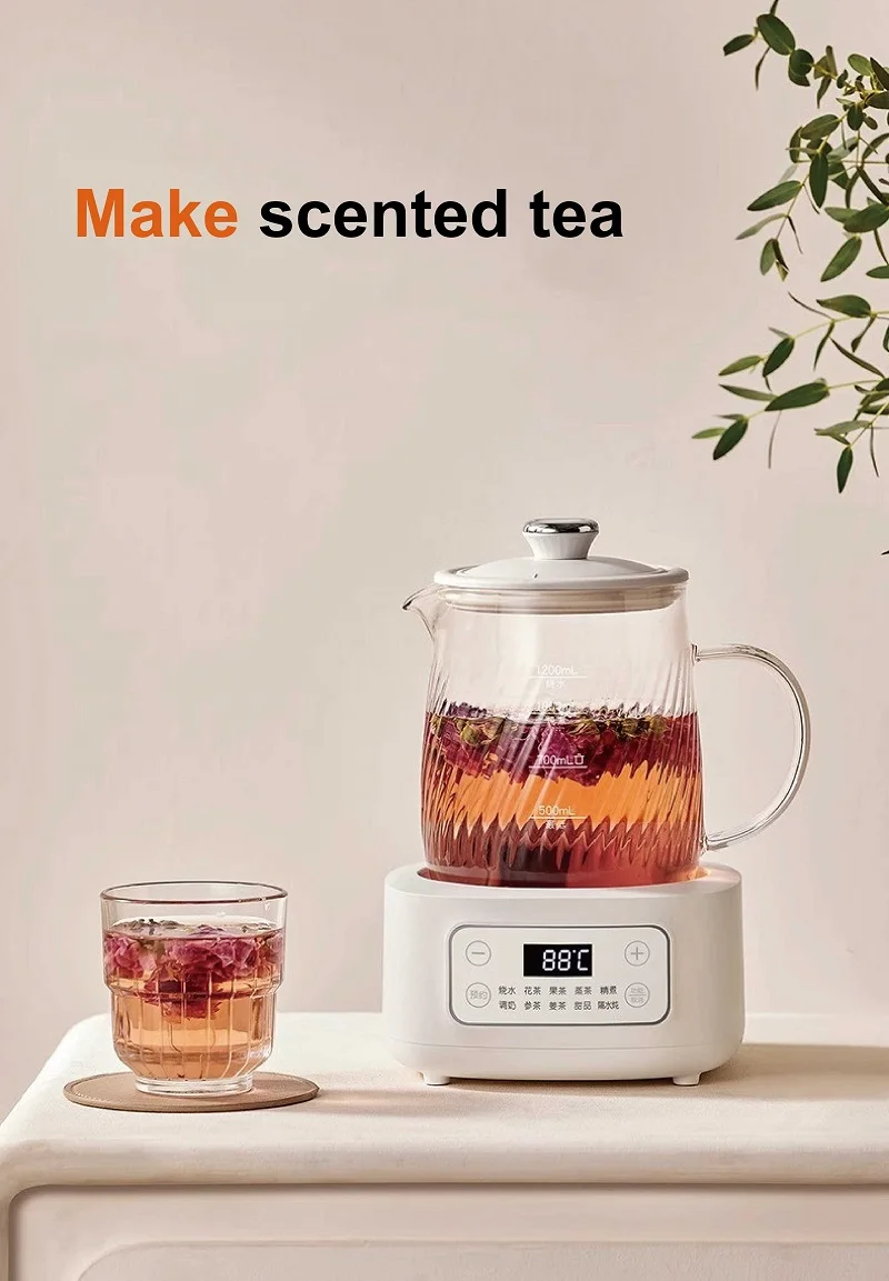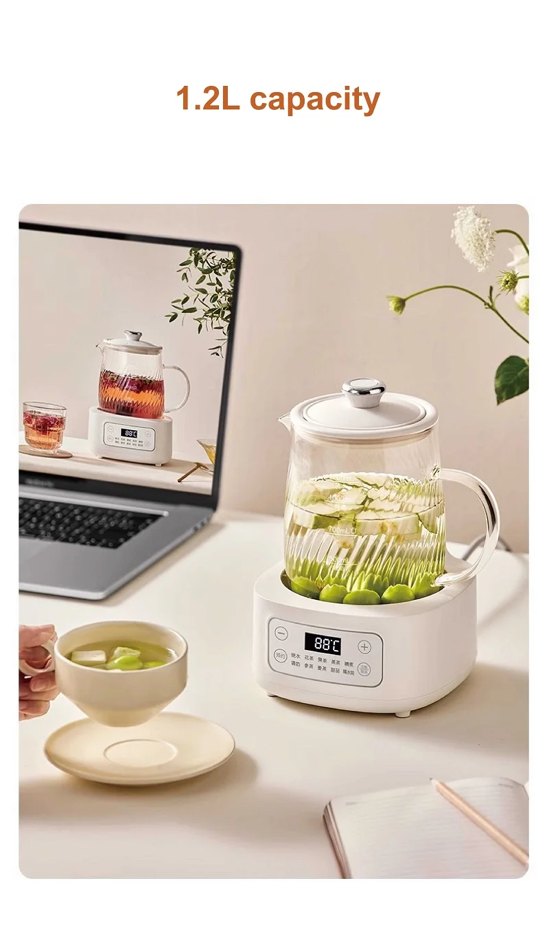 1.2L Health Kettle Temperature Adjust Glass Tea Maker Multi-Function Office Appointment Flower Teapot Portable Electric Kettle