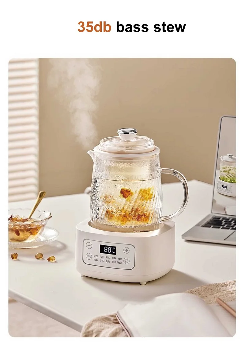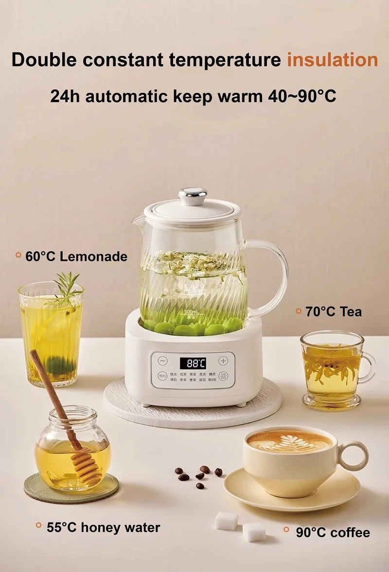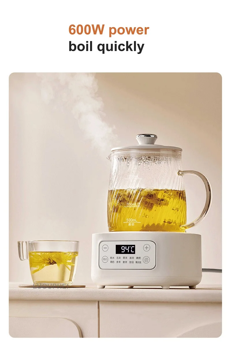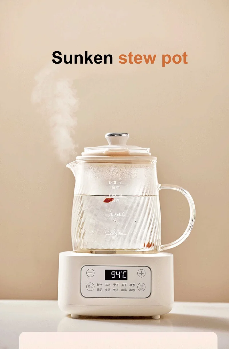 1.2L Health Kettle Temperature Adjust Glass Tea Maker Multi-Function Office Appointment Flower Teapot Portable Electric Kettle