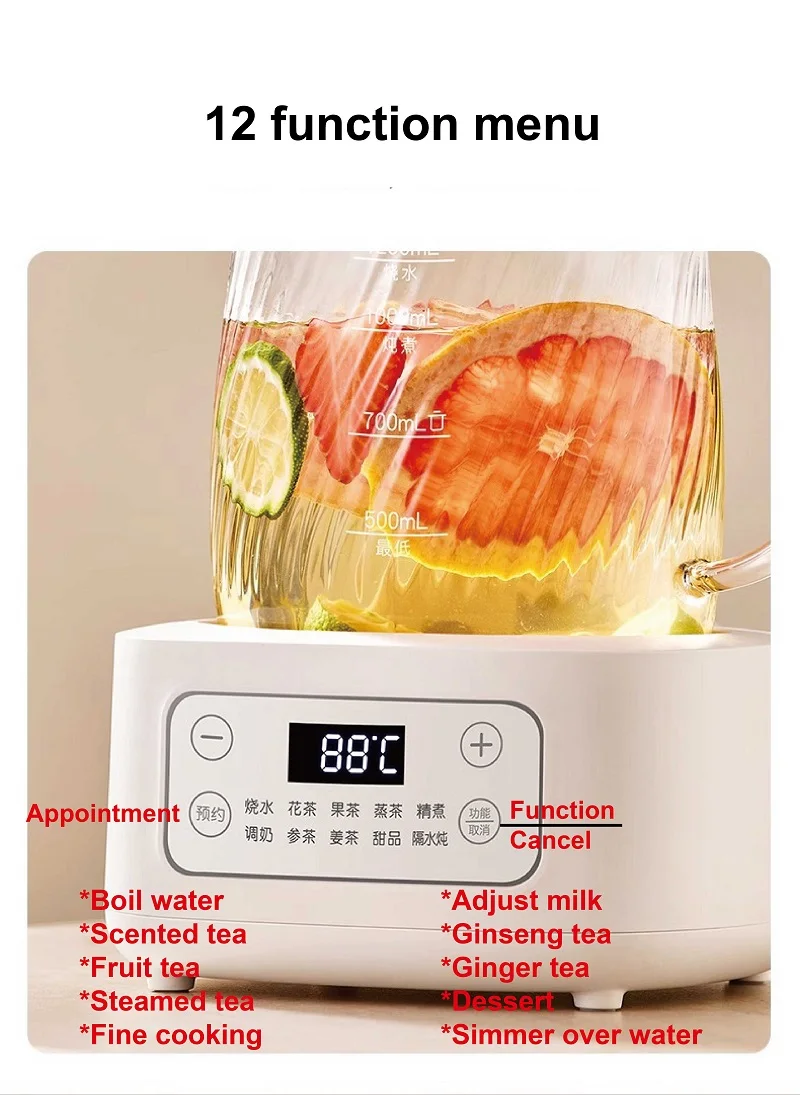 [Function]: Boil water/scented tea/fruit tea/ginger tea/ginseng tea/steamed tea/dessert/stew in water/concentrated boiling/soak milk