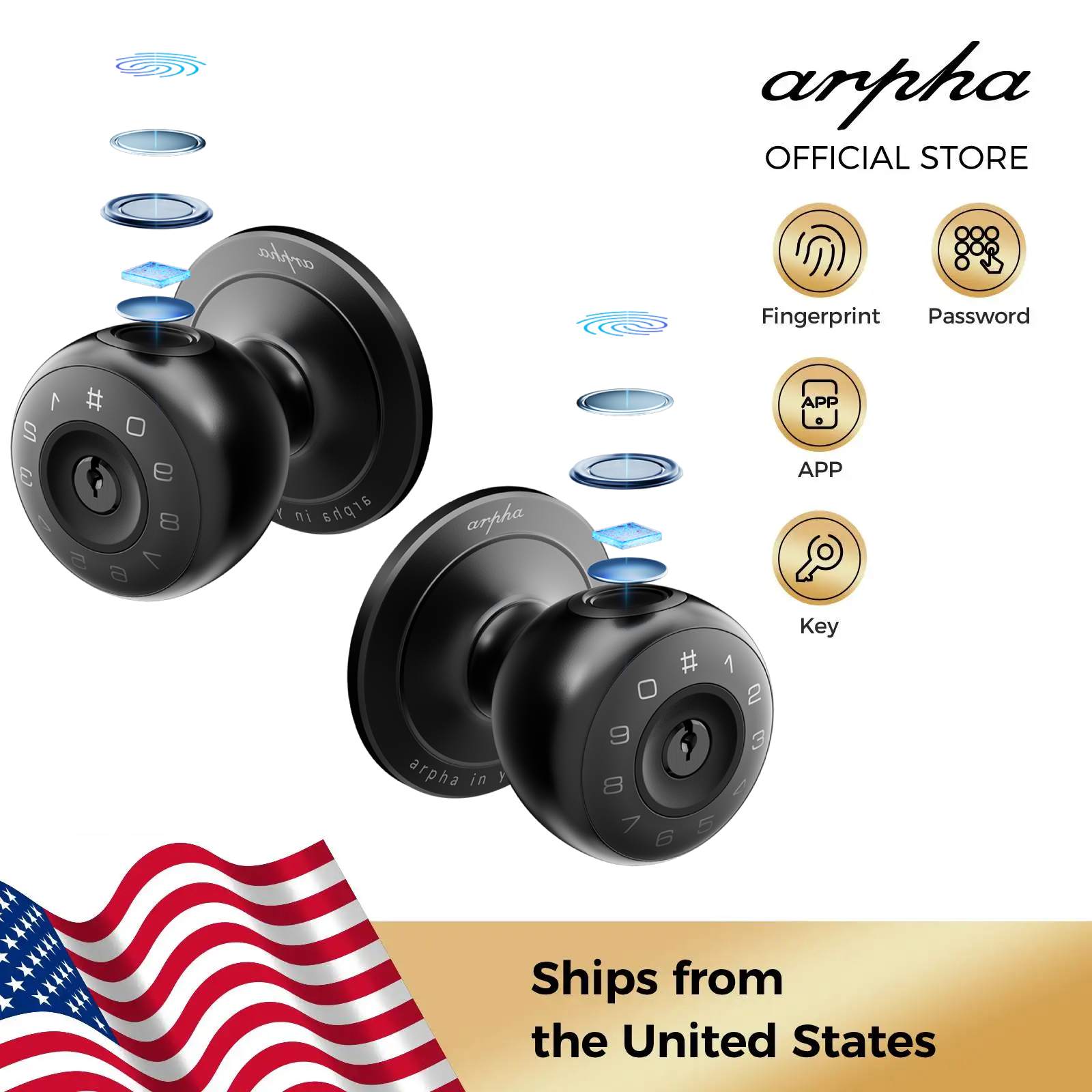 1/2PCS Arpha Smart Lock D260 Keyless Smart Fingerprint Door Lock Door Knob Bluetooth with Keypad App Control Biometric Door Lock