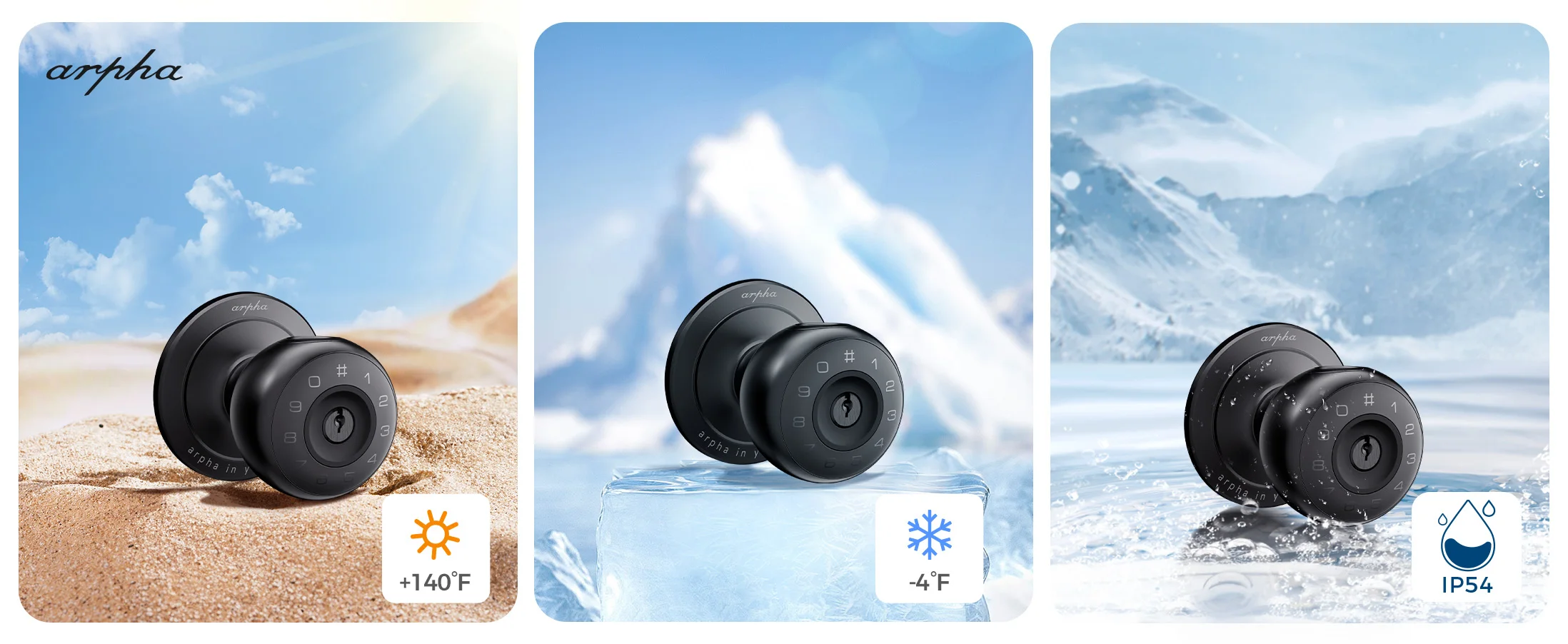 Emergency Type-C port.This smart door lock is adaptable to most weather conditions, whether it’s -4°F or +140°F, it will work just fine, and this door lock has an IP54 waterproof rating.