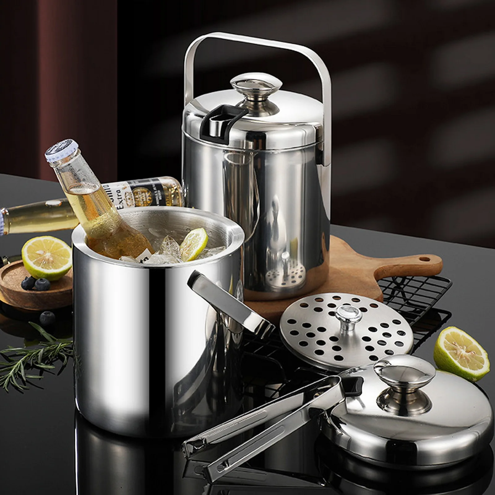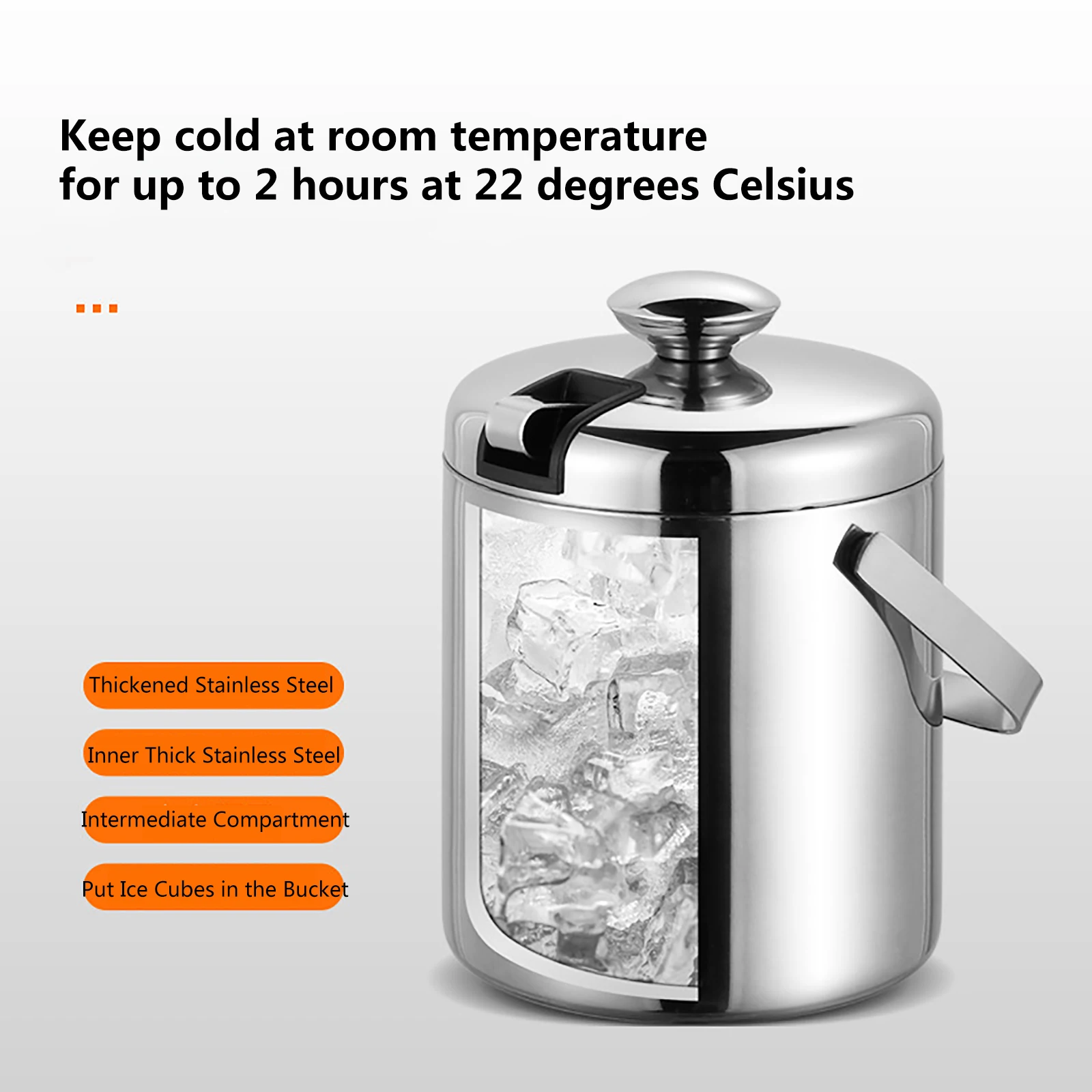 Package Contents:1 Set x Stainless Steel Insulated Ice Bucket With Lid and Ice Tong