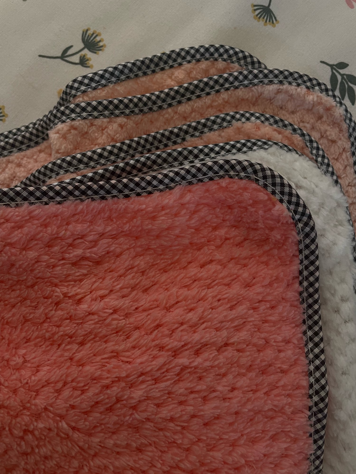 Coral fleece material, soft and comfortable, not easy to fade and hair loss.