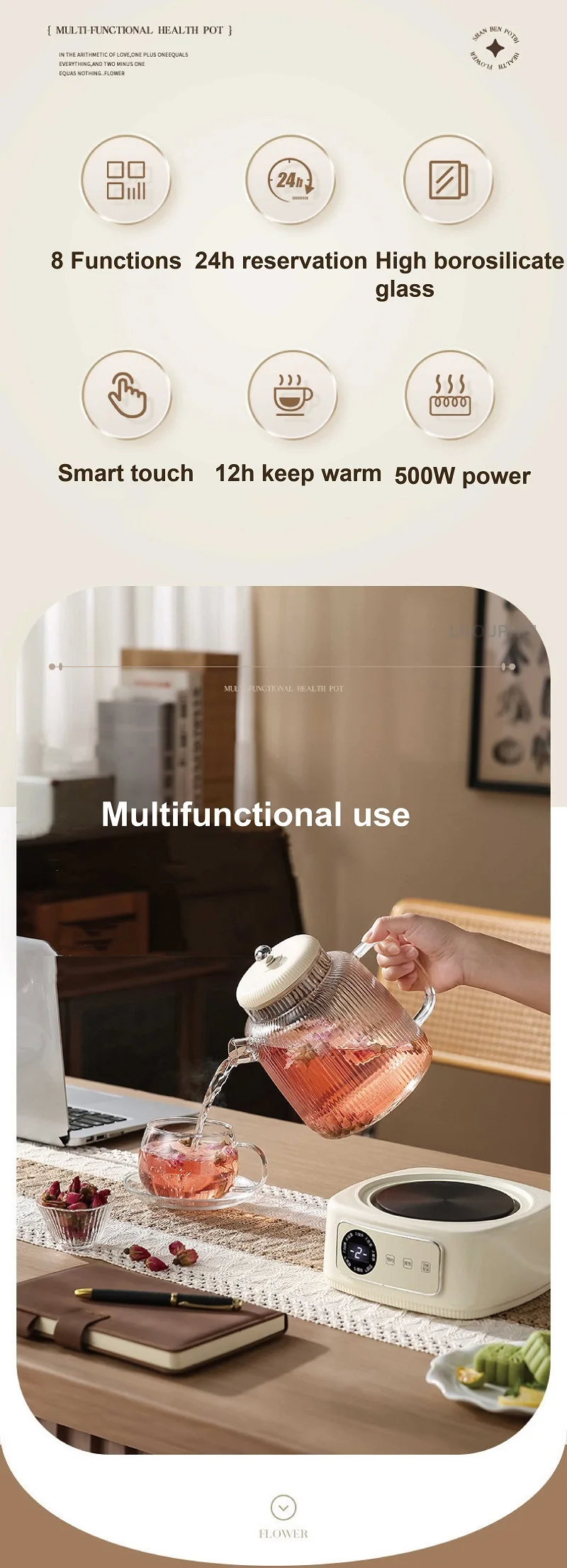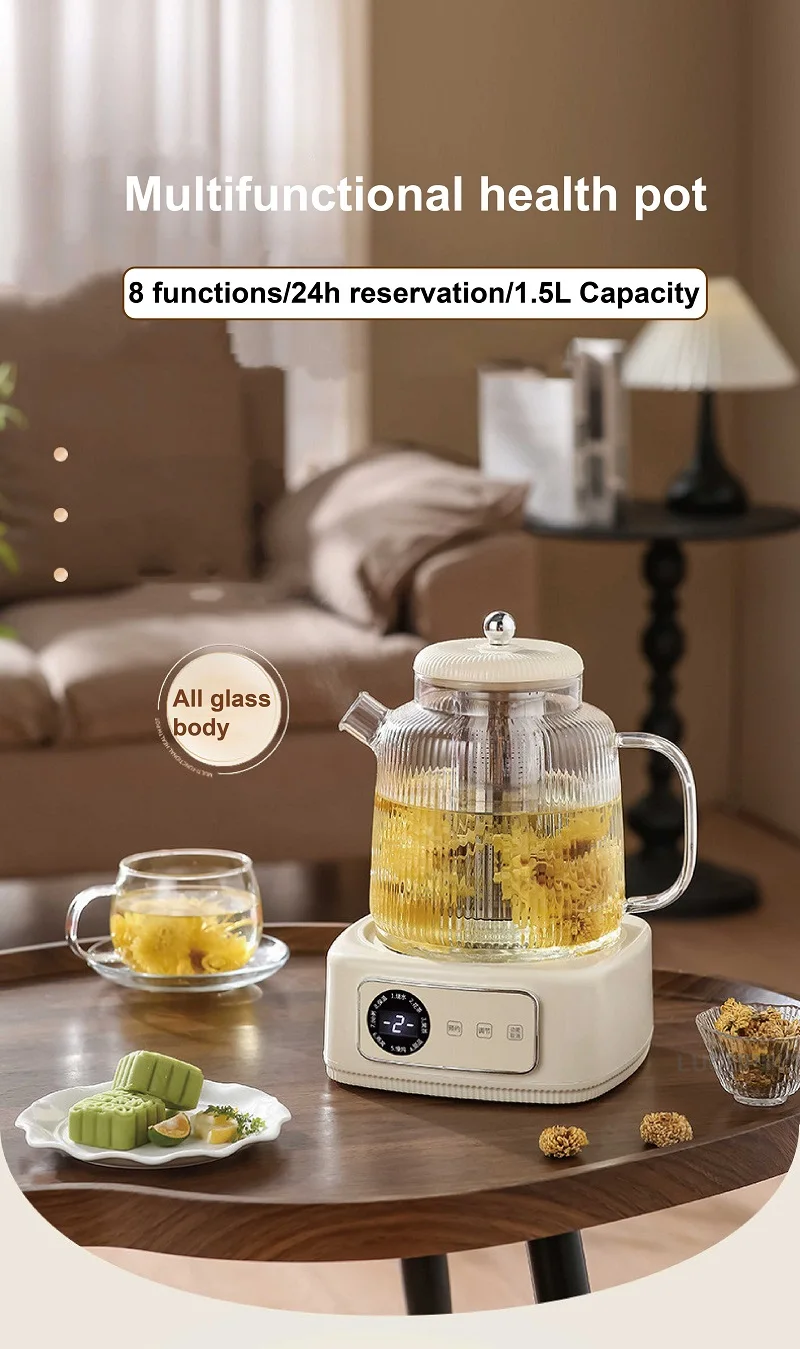 1.5L Health Kettle Temperature Adjust Glass Tea Maker Multi-Function Office Appointment Flower Teapot Portable Electric Kettle