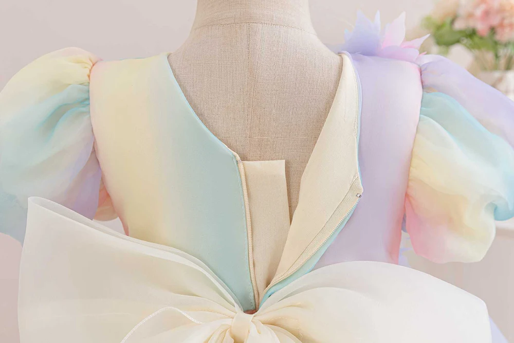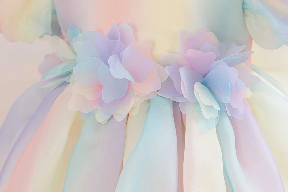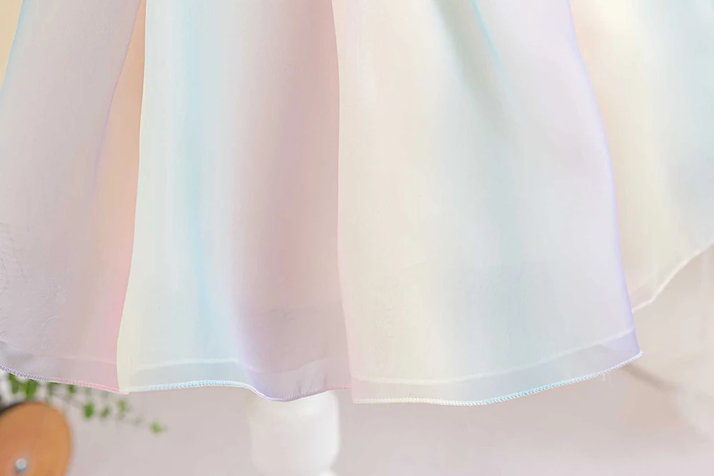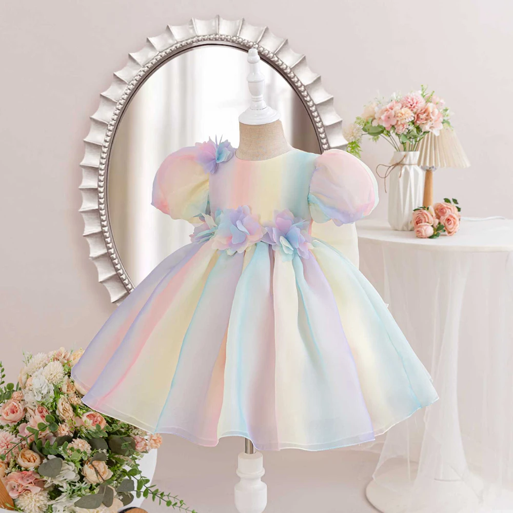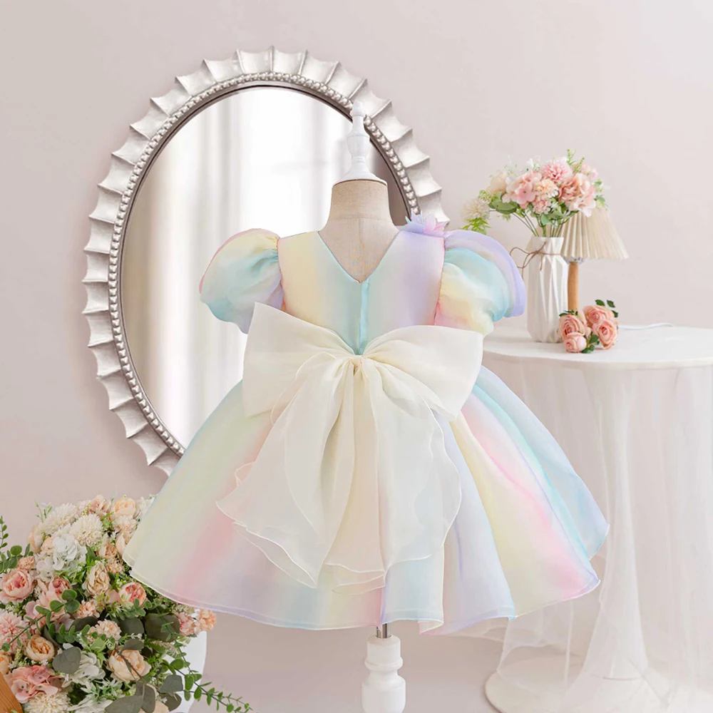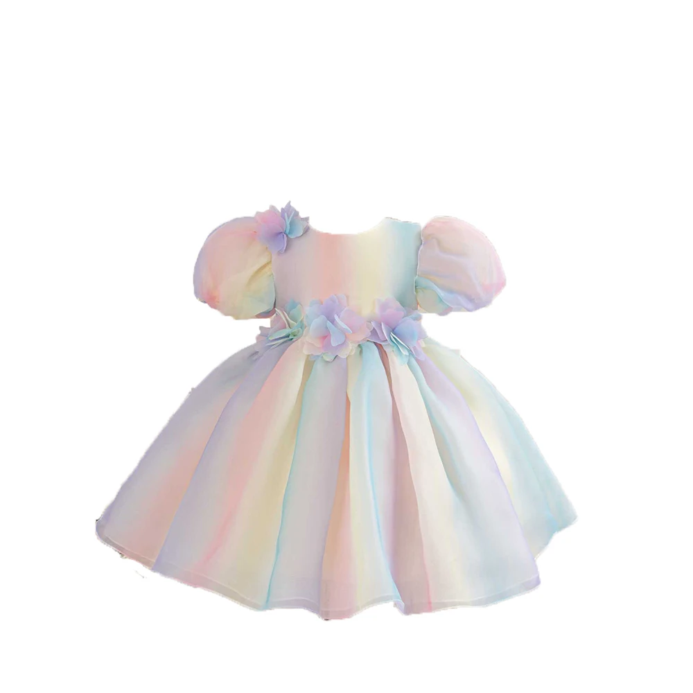 1-6Y Girls Dress for Holiday Birthday Kids Rainbow Tulle Dresses Sweet Child Princess Ball Gown Summer Wear