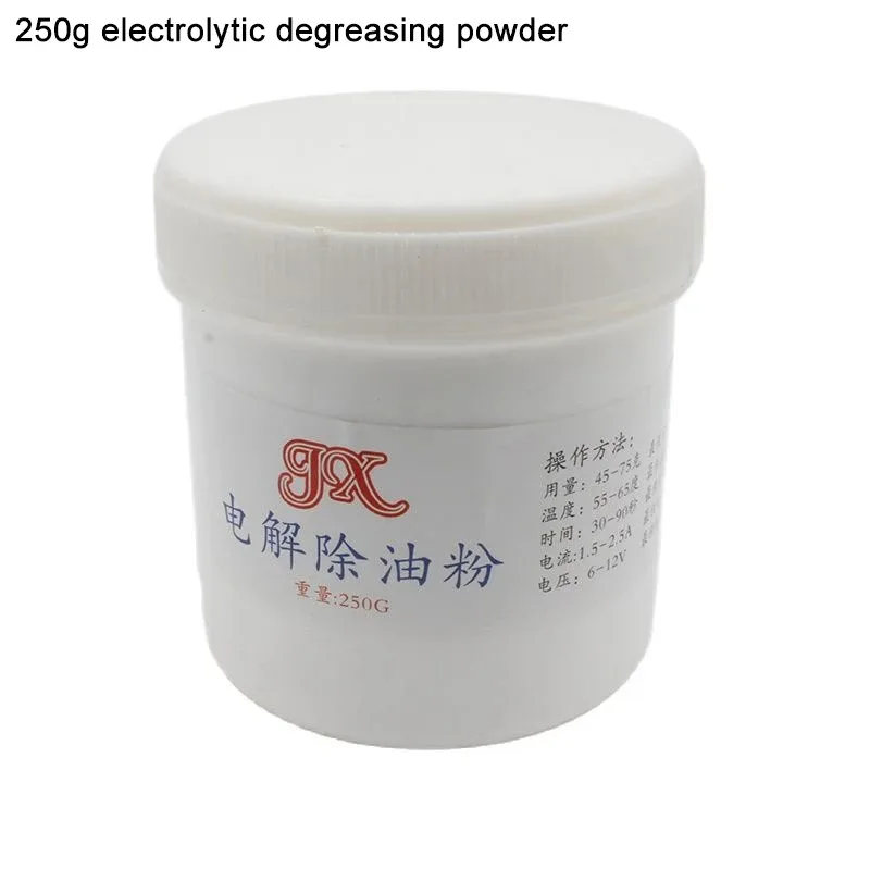 It is suitable for metal electroplating such as Golden/Silver/copper/aluminum/etc. Clean sample surface before electroplating, and then use electrolytic oil removal powder to remove the surface oxide layer to make electroplating easier to color.