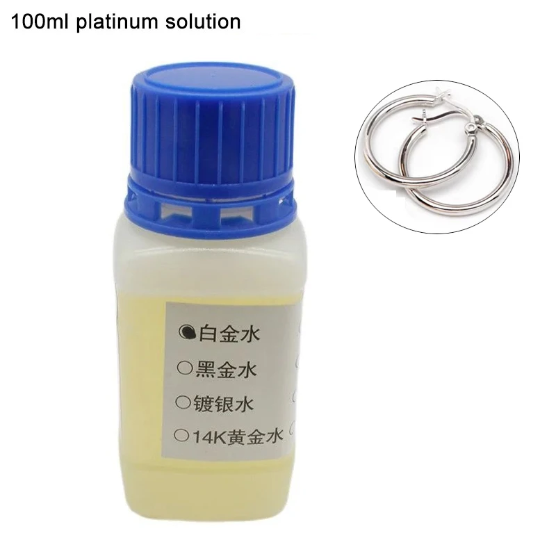 Function:Platinum electroplating water should be used together with electroplating machine + titanium mesh, after stainless steel base, plating 18K platinum is added to achieve silvery white and beautiful, wear-resistant and bright.