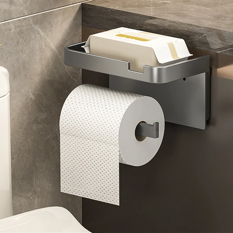 1 Pack Wall-Mounted No-Drill Toilet Paper Holder with Shelf and Phone Holder, Polypropylene Material, Bathroom Tissue Roll Dispe