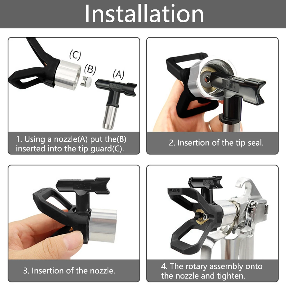 【Easy To Installation】Paint sprayer is very easy to install that can be easily fitted to the gun in a few simple steps; first seal the sprayer washer in the base, then insert the nozzle into the base and rotate it to complete the installation without the need for too many tools, saving time and effort on your project.