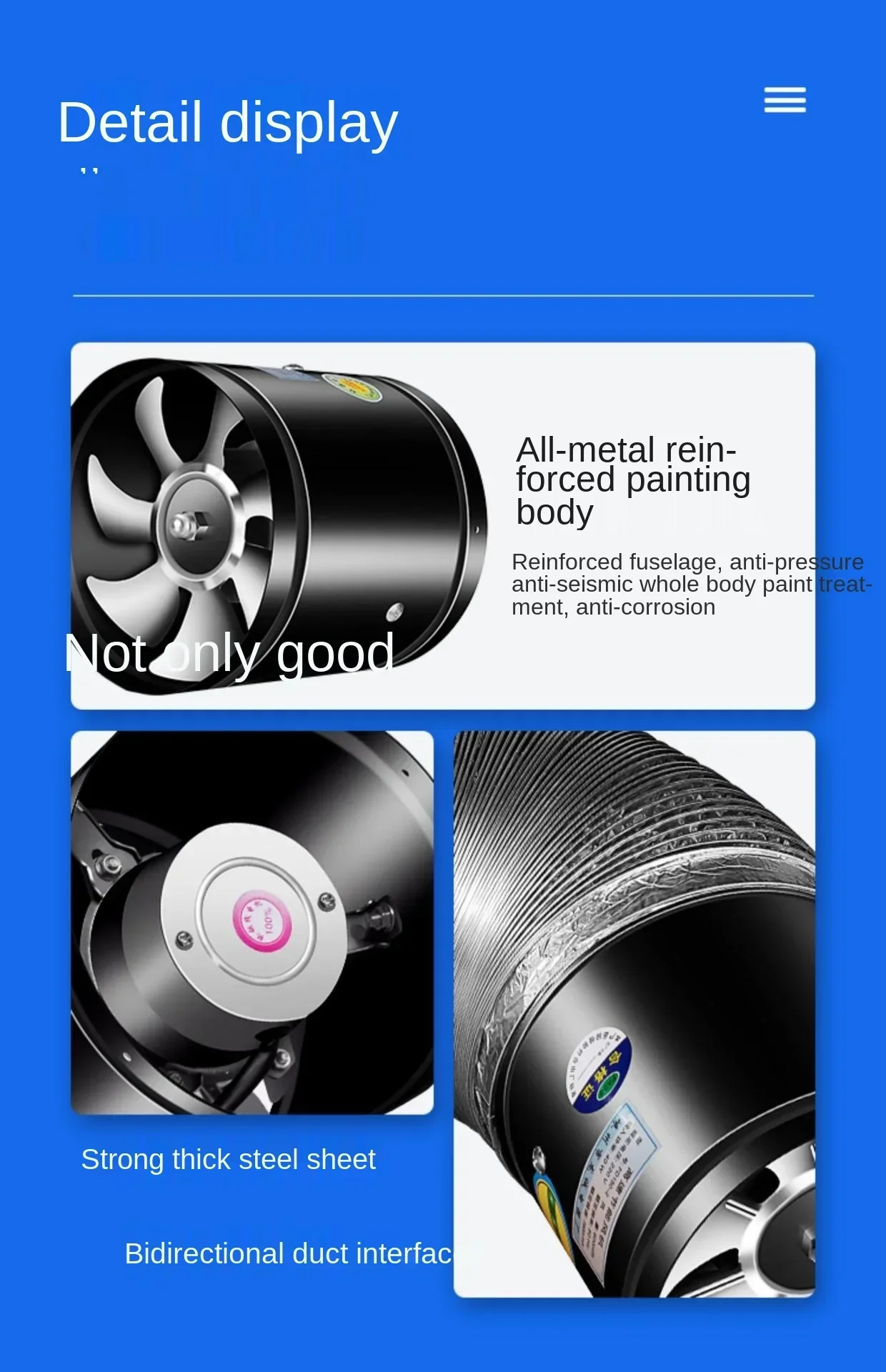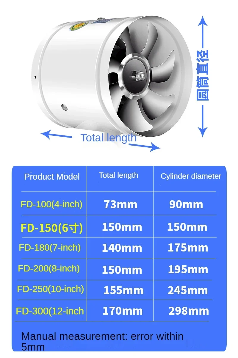10/12inch Duct Fan Air Ventilator Metal Pipe Ventilation Exhaust Fan Extractor Kitchen Wall Fan Powerful Booster Industrial Fan