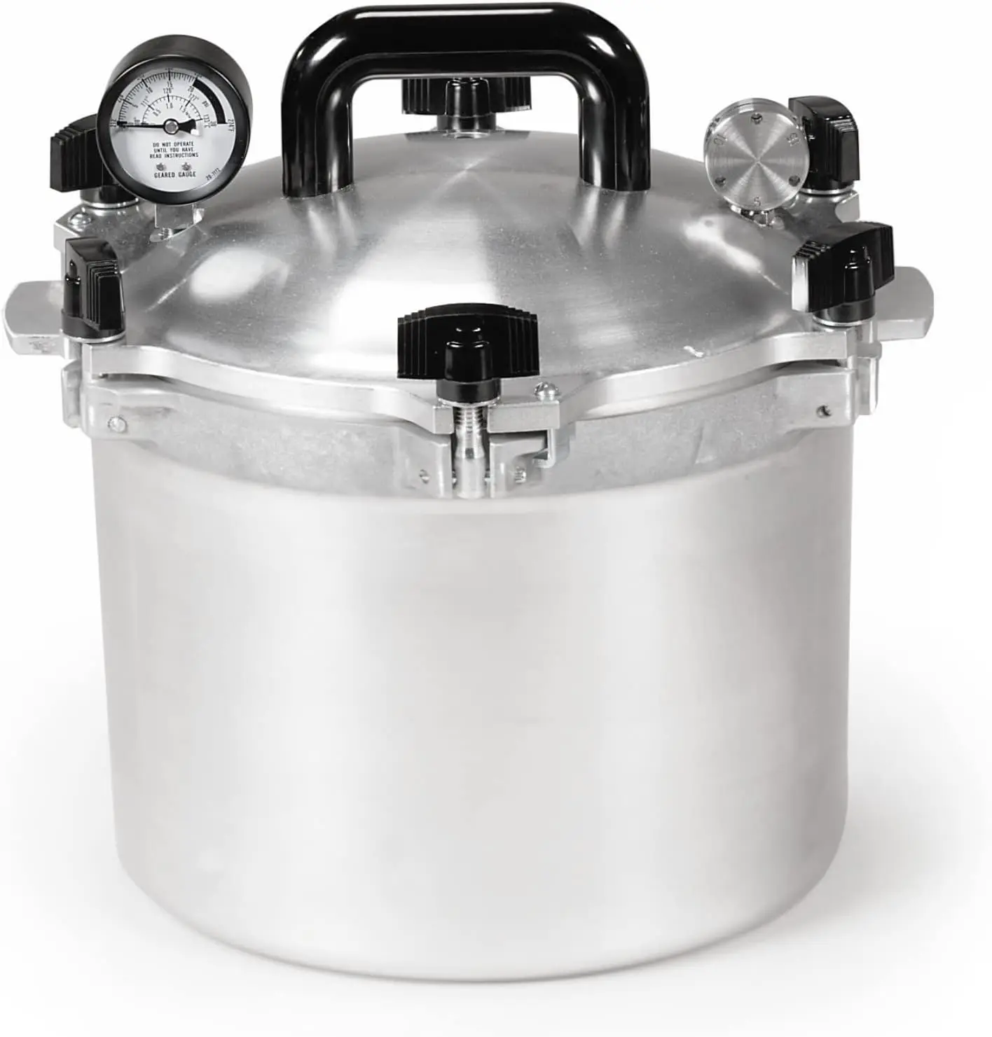 - PRESSURE COOKER + CANNER – All American 1930 Pressure Cookers/Canners offer an easy solution for home canning. The USDA recommends pressure canning as the only safe way to can meat, vegetables & fruit. Holds approximately 7 pint jars or 4 quart jars.