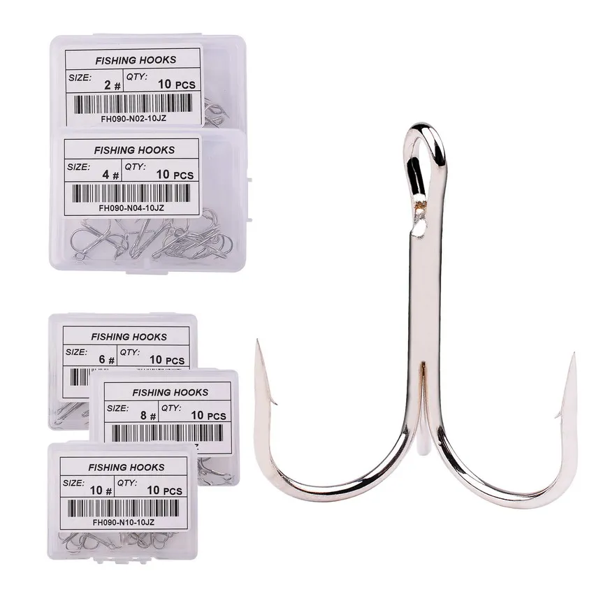 10 PCS/Box Silver Anchor Hook High Carbon Steel Barbed Treble Hook Fishing Tackle