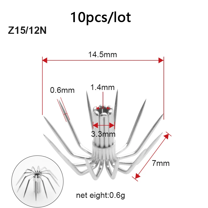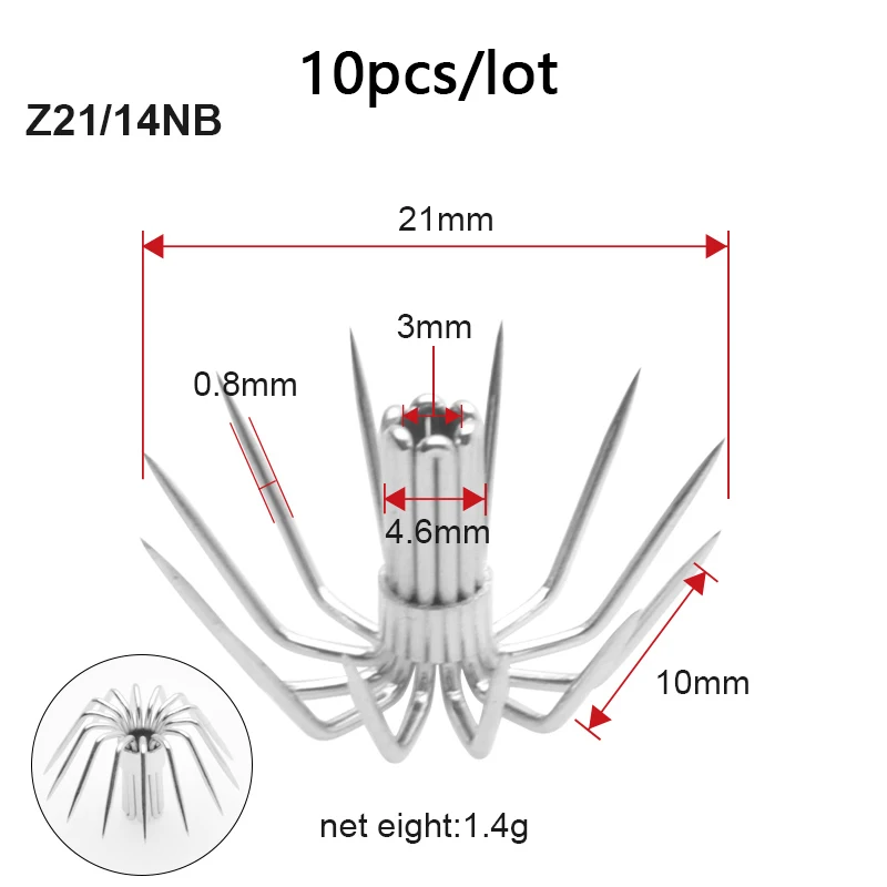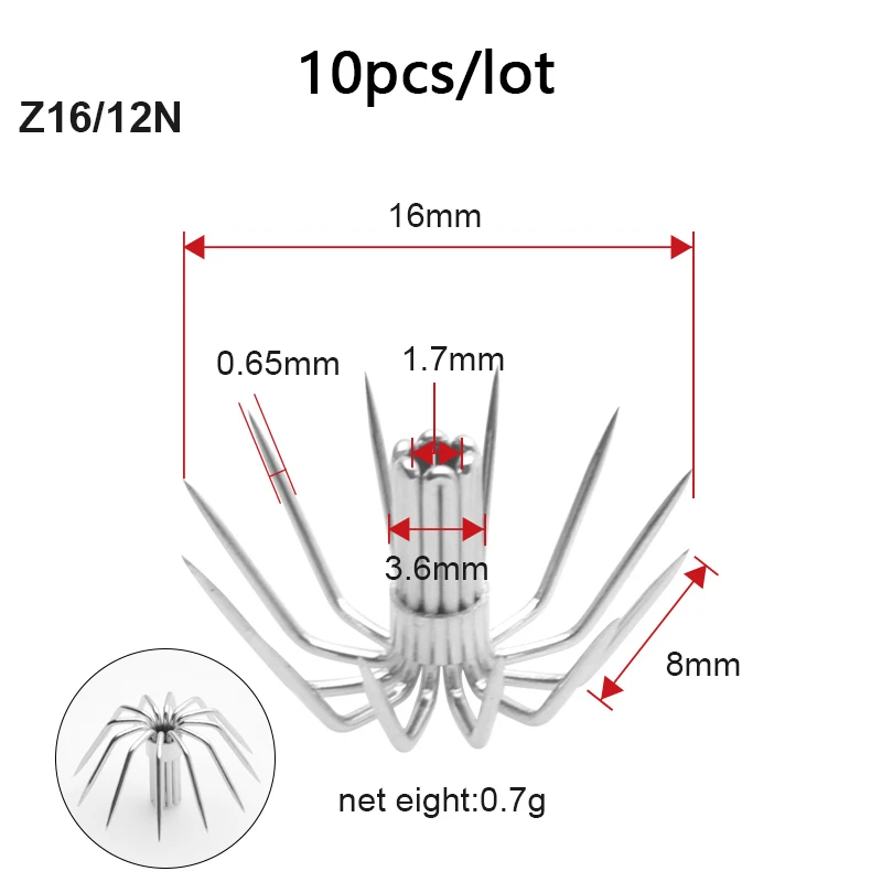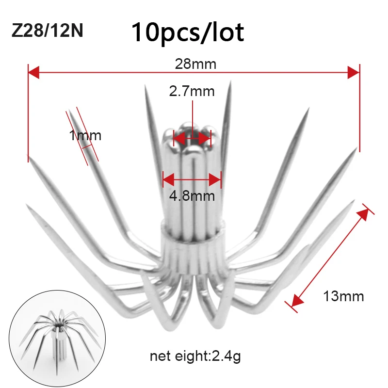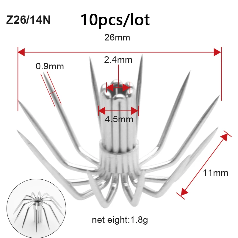 10 pcs of stainless steel umbrella hook, squid hook, large fishing hook, anti seawater multi claw sealed fish hook, squid hoo