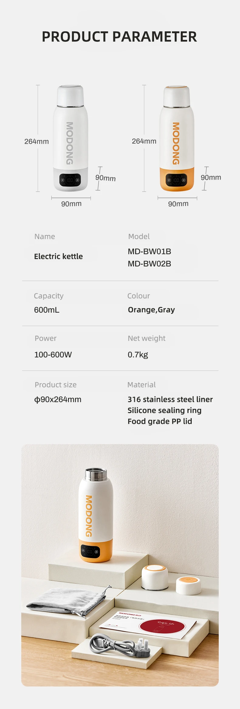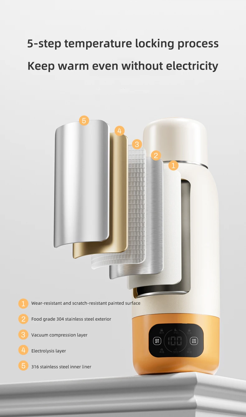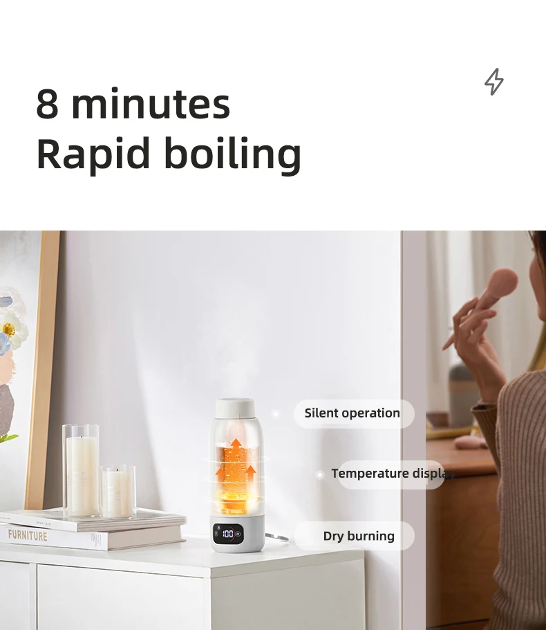 600ml Electric Kettle Portable Heating Cup Multifunction Boiled Water Pot Smart Teapot Adjustable Temperature Kettles for Travel