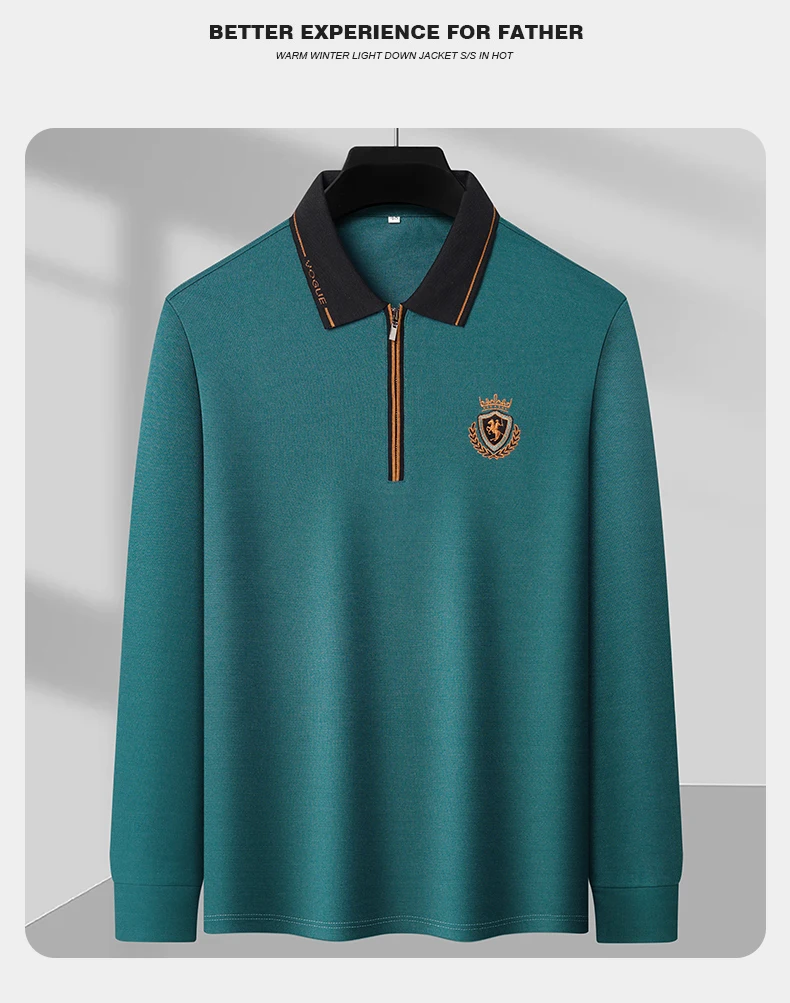 100% Cotton High end Polo Shirt Men’s Long Sleeve Luxury Brand Autumn New Exquisite Embroidery Business Casual Polo Neck T-shirt