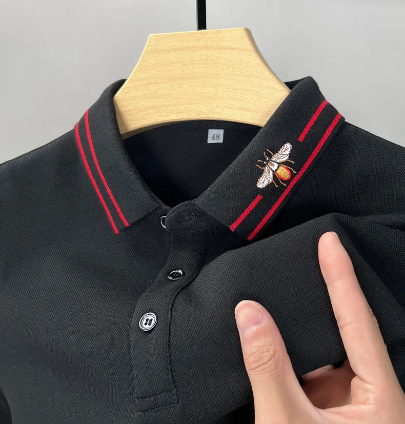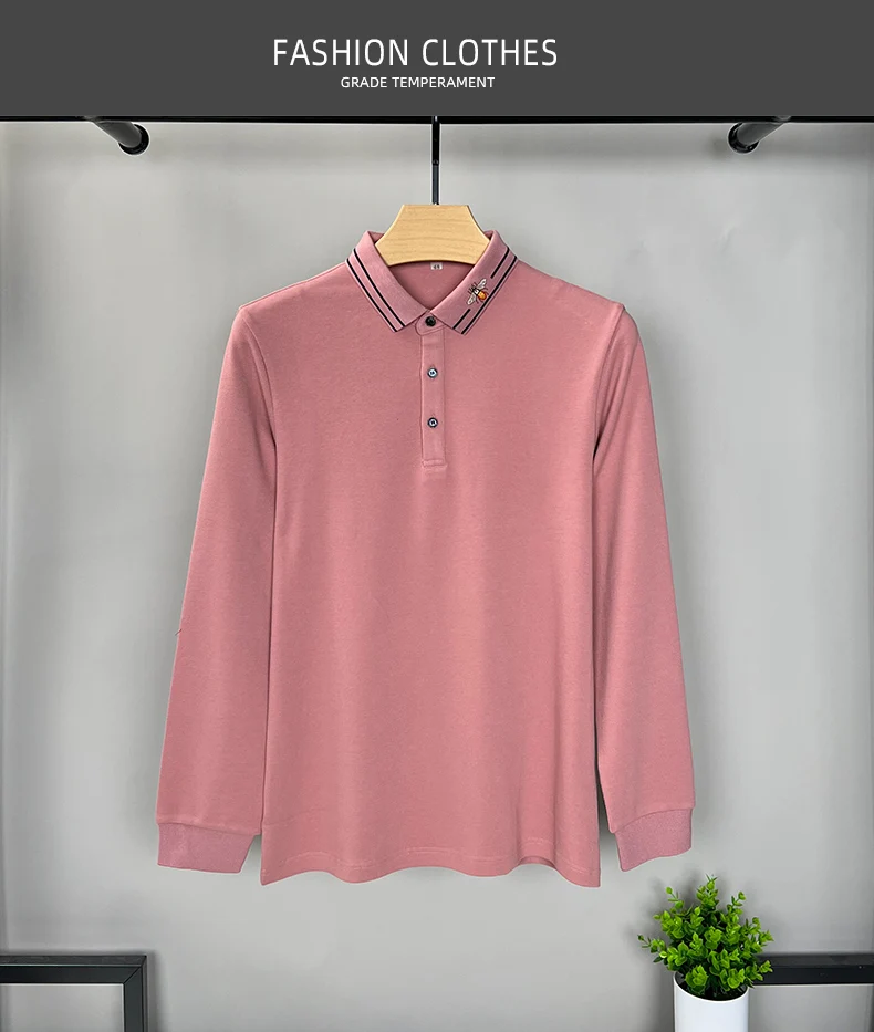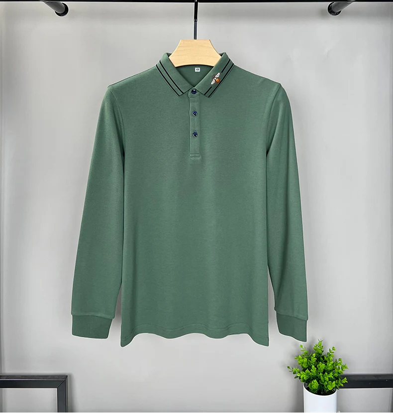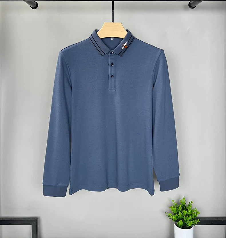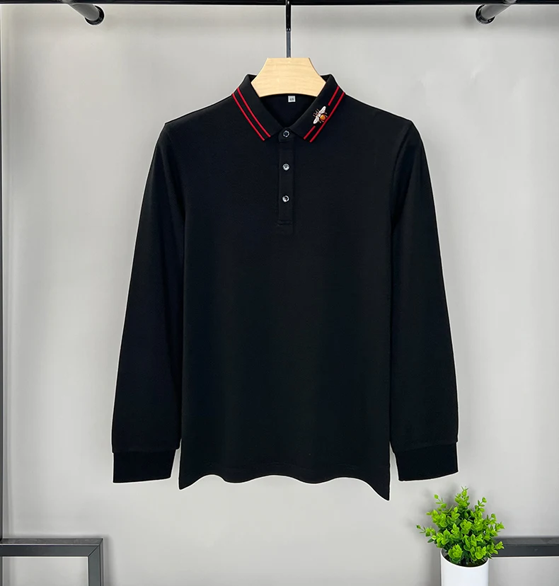 100% Cotton Long Sleeved Men’s Polo Shirt with Embroidered Spring and Autumn Seasons, Loose Fitting Korean Classic Casual Top