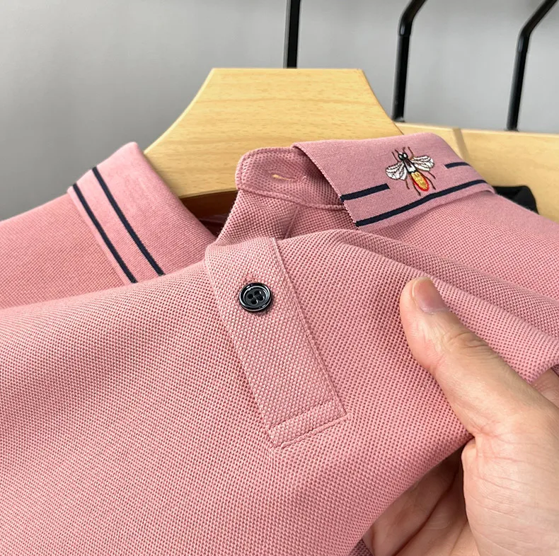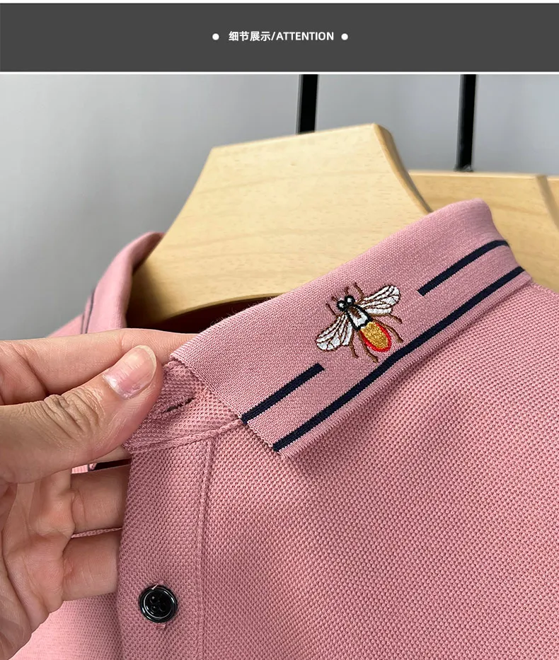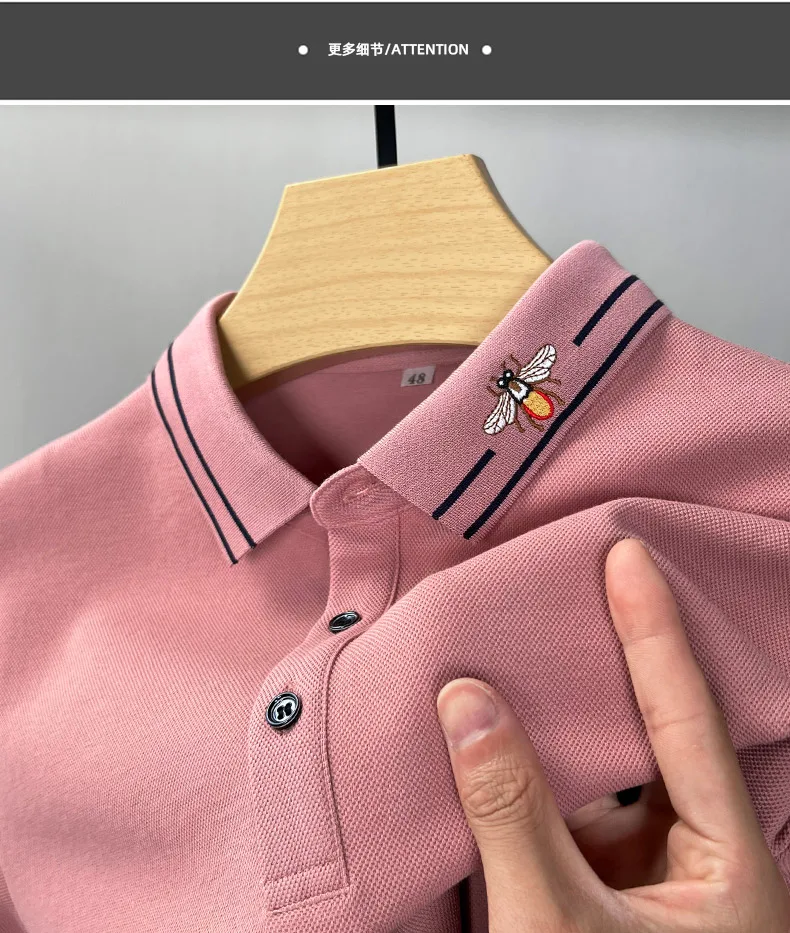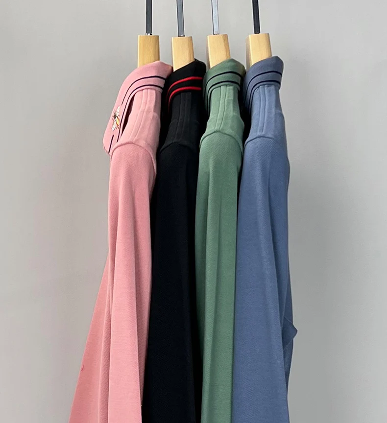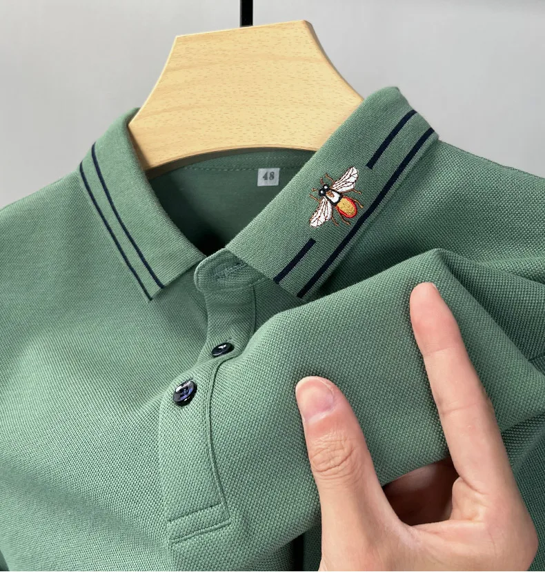 100% Cotton Long Sleeved Men’s Polo Shirt with Embroidered Spring and Autumn Seasons, Loose Fitting Korean Classic Casual Top