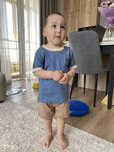 Great T-shirts. Took on recommendations. Took several colors and several sizes at once. The fabric is nice, cotton. The neck stretches well. Colors match the seller's photo. Everything is sewn neatly and smoothly, the threads do not stick out. In the size of 2-3 T on the tag is 3 T. In the size of 3-4 T on the tag is indicated 4 T. Son is now 2 years old. Height about 88 cm, weight about 13 kg. Size 2-3 T is too big, let's leave for growth. Because I don't like too much over. I definitely recommend for purchase. Bought for sale for 386 p/piece For comparison, the size of 2-3 T and 3-4 T are on top of each other.