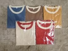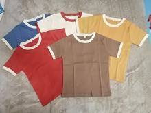 Super T-shirts. Took all the colors at once. The fabric is nice, cotton. But I think there are some synthetics, as they stretch well. Colors match the seller's photo. Everything is sewn neatly and smoothly, the threads do not stick out. Took for growth, size 4-5. The label says 5 T. Ordered the same smaller size immediately. I definitely recommend for purchase. Bought for 442r/piece Now 386 r/pcs