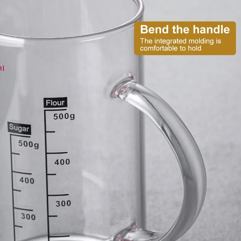 4. Read accurately when measuring white powder or white liquid. The wide mouth design of the cup is easy to clean. V-shaped nozzle, can directly pour liquid, convenient drainage. Handy insulated handle