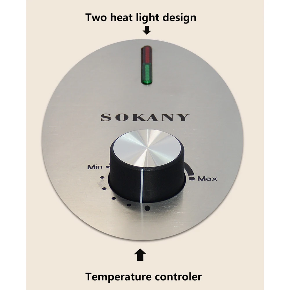 5.Adjustable temperature waffle maker, double-sided heating, automatic temperature control
