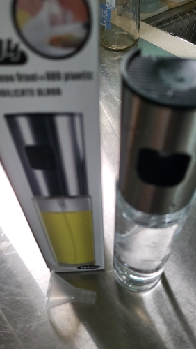 [Design]: Our oil sprayer is made of stainless steel and transparent glass, with raised and extended nozzle and non-slip button, press hard several times to show the mister. You can easily use it to spray food, it is a hand gadget for the home & kitchen.