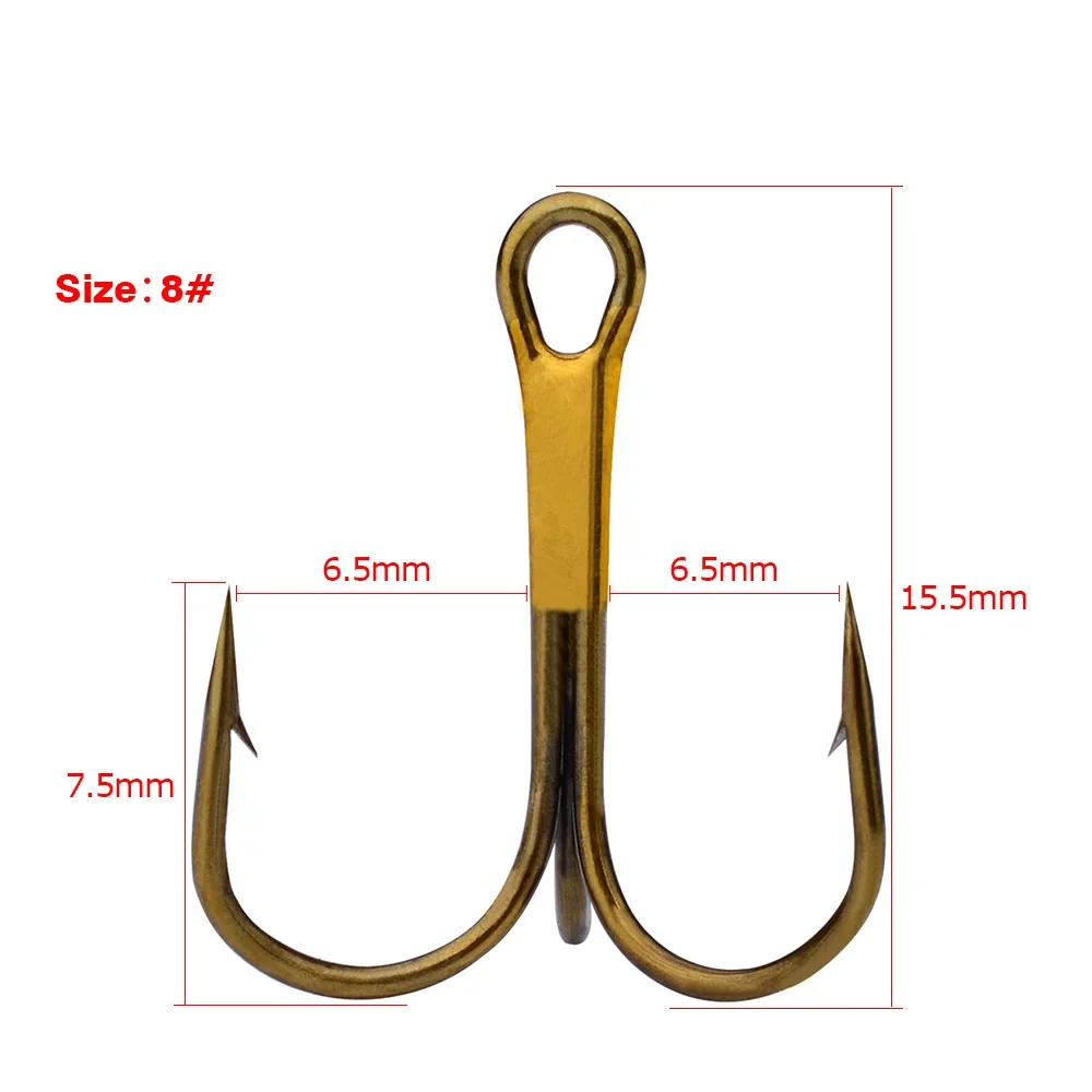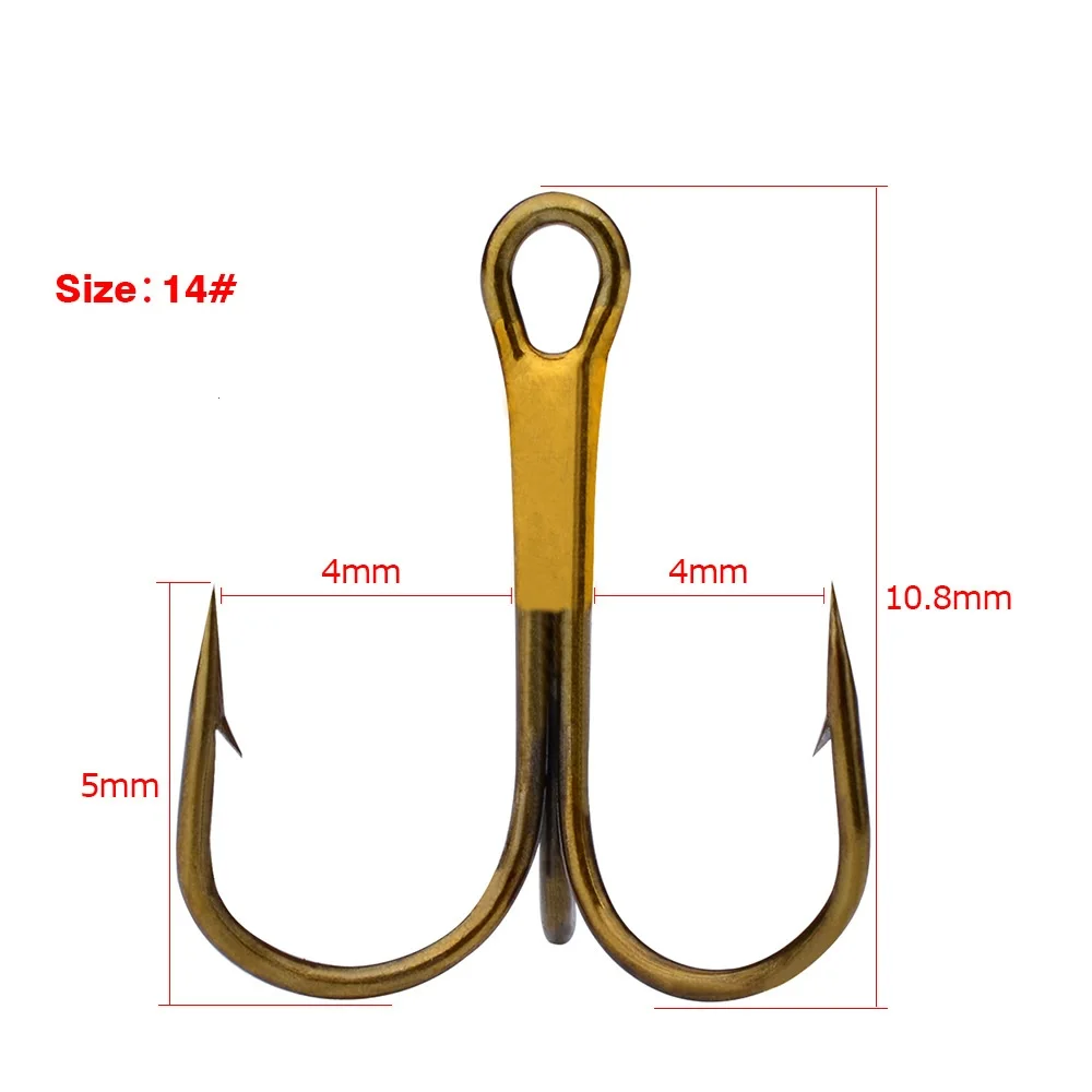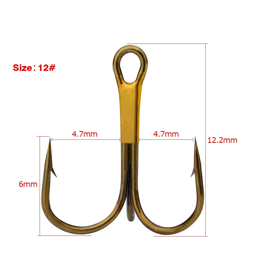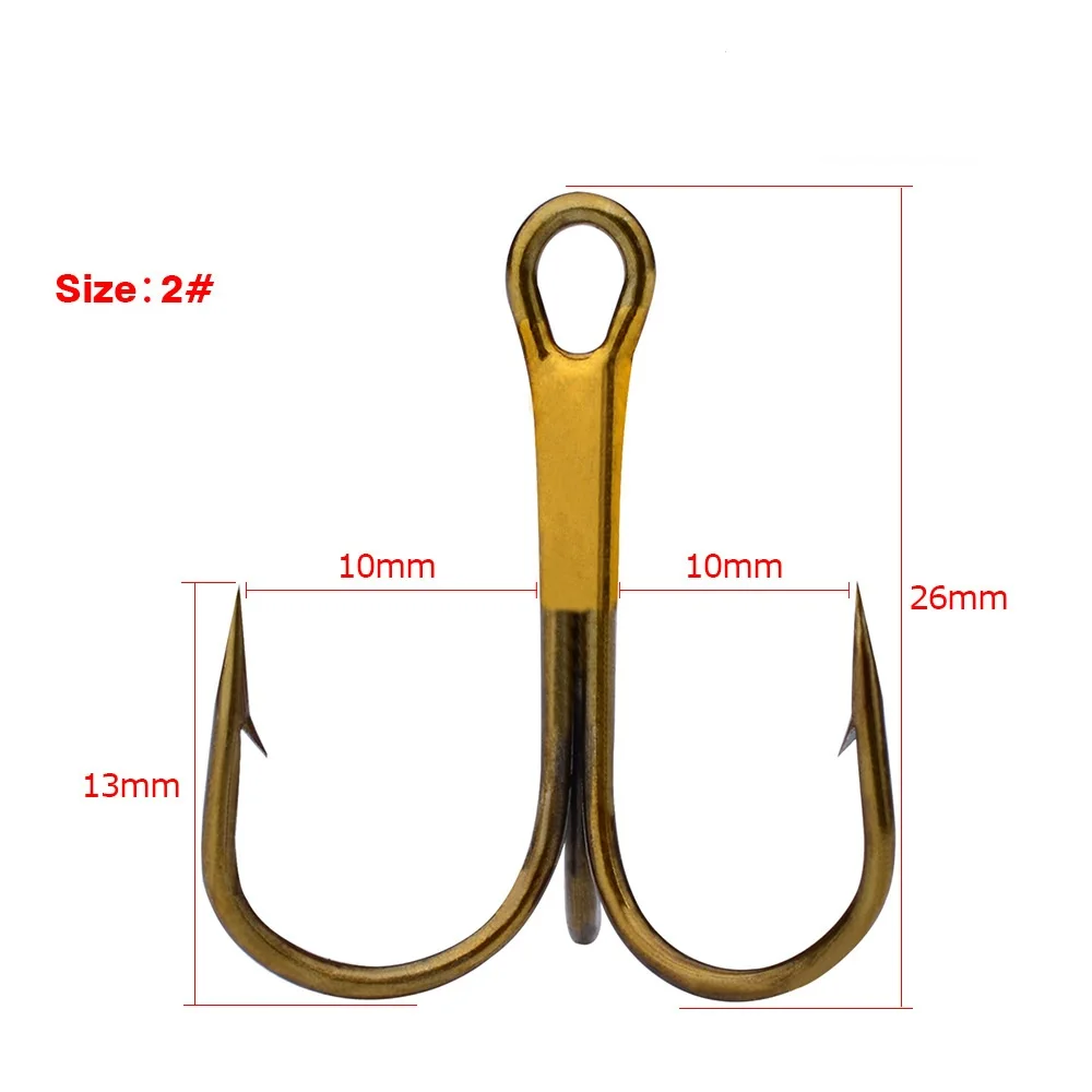 100pcs 35647 Golden Treble Hooks High Carbon Steel Round Bent Treble Triple Artificial Lure Jig Fishhook Size 10# 8# 6# 4# 2#