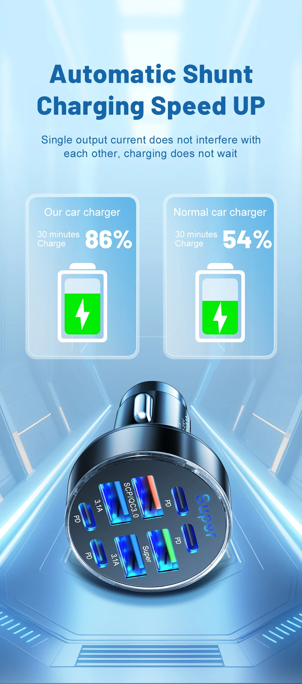Output Parameter: Green Super Port: 5V/3A 9V/2.2A12V/1.6A (Display super fast charging)