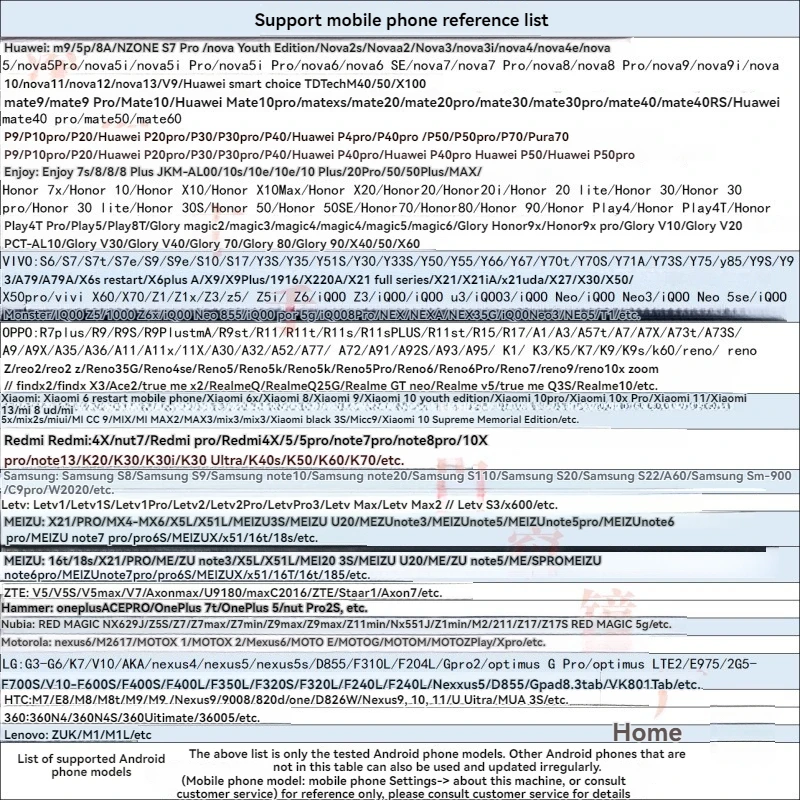 The following are the Android phones that have been tested. If you cannot try it, please contact customer service in time.