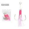 10Pairs Metal Jig Assist Hook Pink Double Hooks Thread Feather High Carbon Steel Sea Fishing Hook Slow Jigging Peche