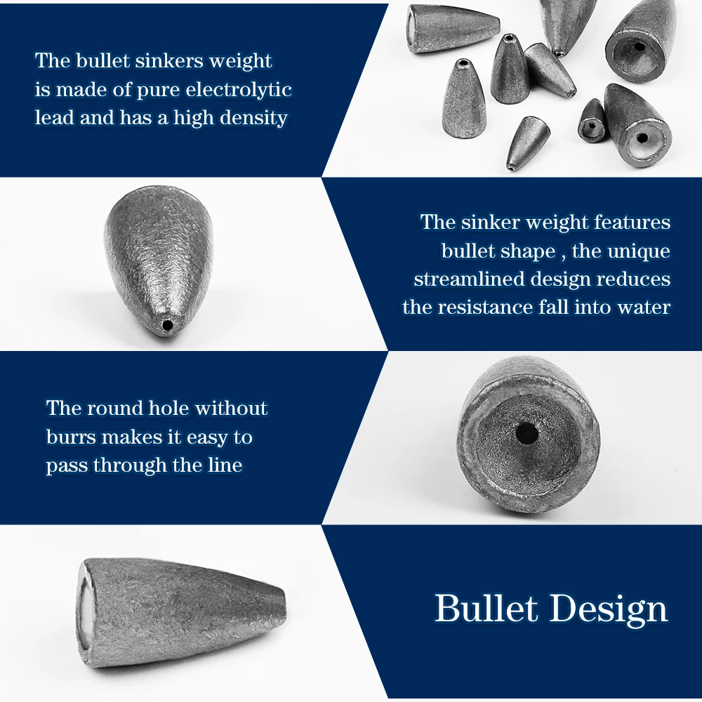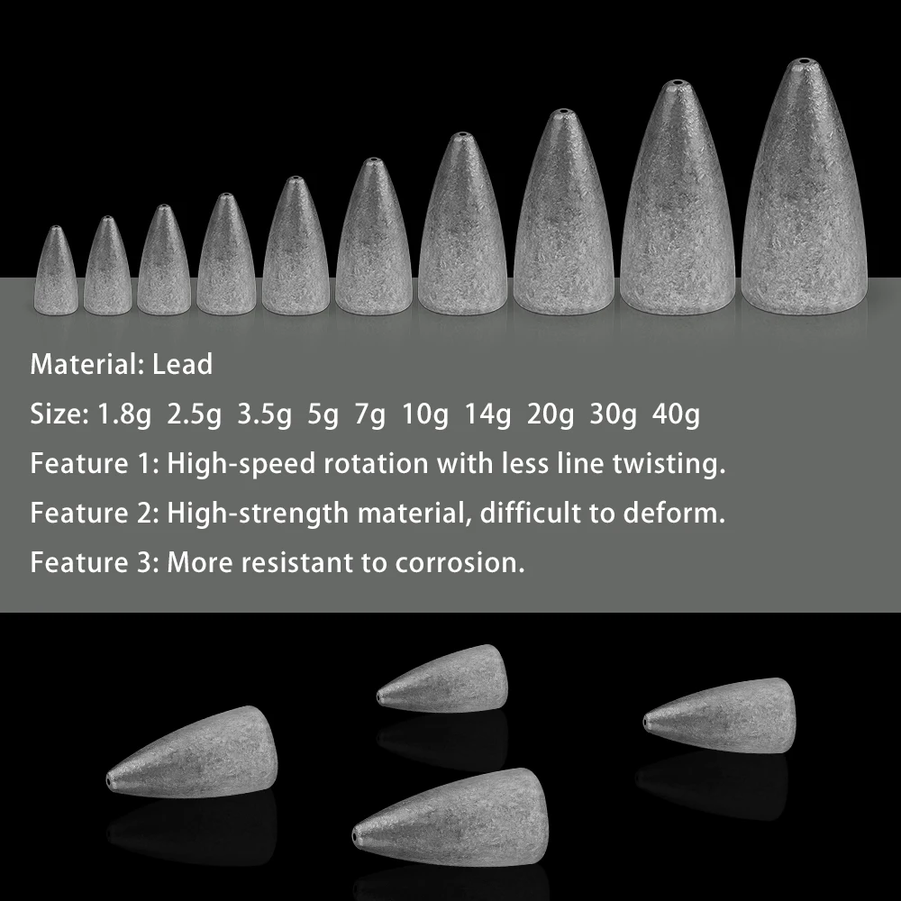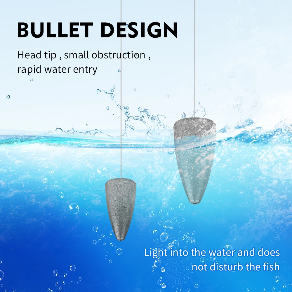 10pcs Heavy-Duty Saltwater Bullet Lead Sinker 5g~30g Bullet Sinkers for Improved Casting Distance and Precision Fishing