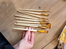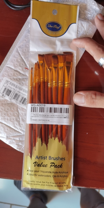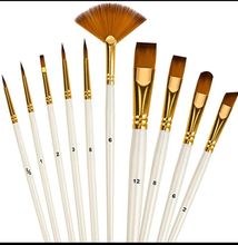 Nice nylon hair brushes,10pcs will be good for acrylic,oil and other paints.Delivery was fast,two weeks to Ukraine.