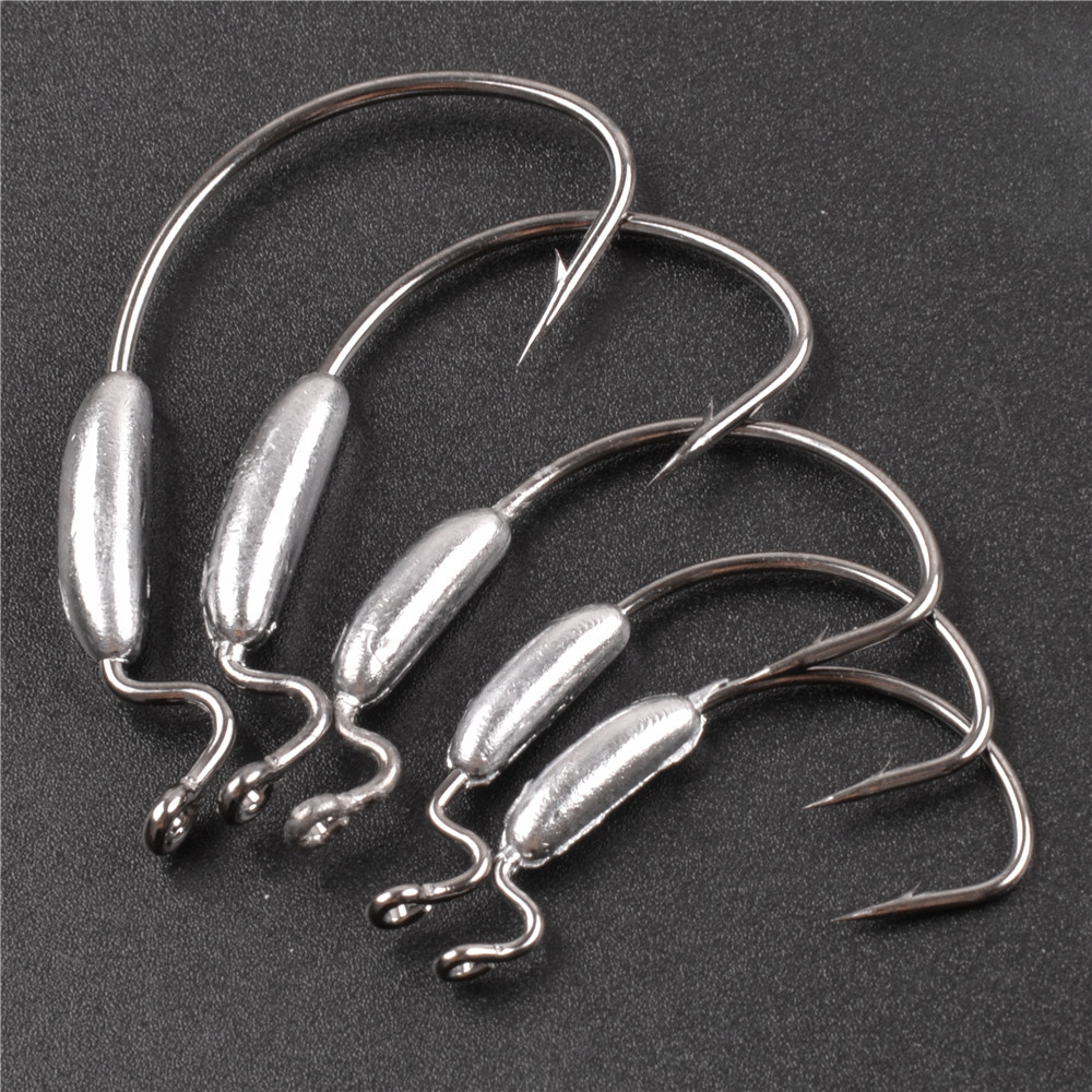 10Pcs Weighted Worm Hook Saltwater Offset Curved Crank Wide Gap Fishing Hooks for Bass Jig fishing rig kit 2.5g 2.8g 3.5g 5g 6g