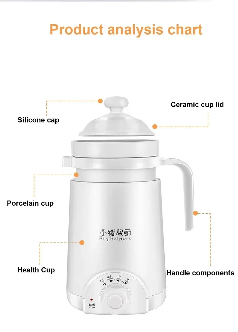 110V Health Cup Office Ceramic Soup Porridge Health Kettle Tea Maker With Temperature Adjust Portable Electric Stew Cup 500ml