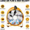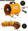 The MOUNTO 12-Inch Heavy Duty Axial Fan with 25-Foot Hose is designed for powerful and directional airflow, making it ideal for ventilation in confined spaces such as crawl spaces, attics, and basements. With a high-performance capacity of 2900 CFM, this portable blower/exhaust fan ensures efficient air circulation in hard-to-reach areas. Constructed with heavy-duty orange coated steel, this axial blower offers exceptional durability and reliability in demanding environments. Its compact design, coupled with a 25-foot vinyl hose, provides the flexibility needed to direct airflow precisely where it’s needed. This axial fan features a 1-speed 120V enclosed motor, operating quietly at 70db, making it suitable for various applications. The included 6-foot power cord allows for convenient setup and use.