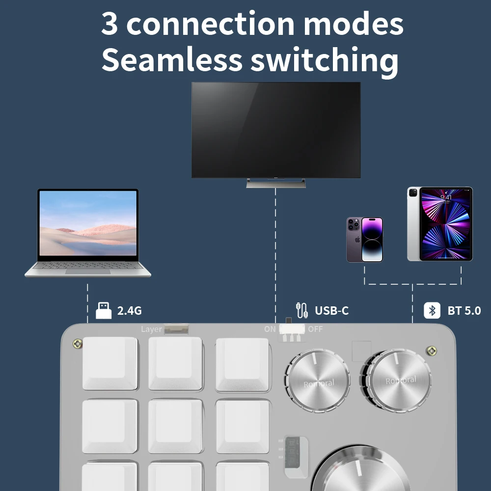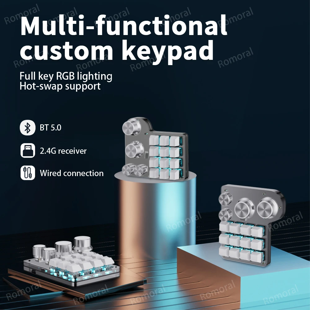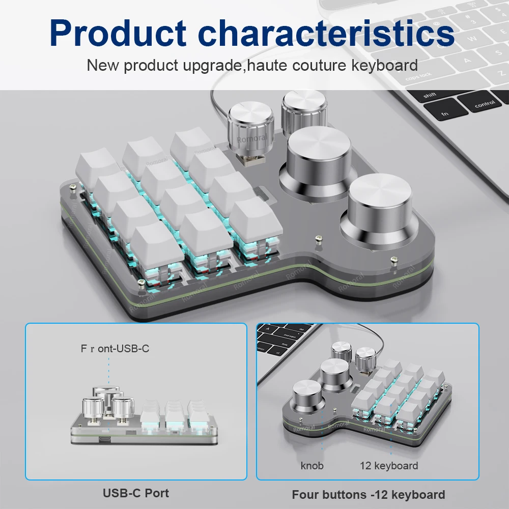 12 Keys 4-Knobs Custom Macro Keyboard Hotswap Programmable Keyboard with RGB Backlight For Photoshop Gaming Keypad Mechanical