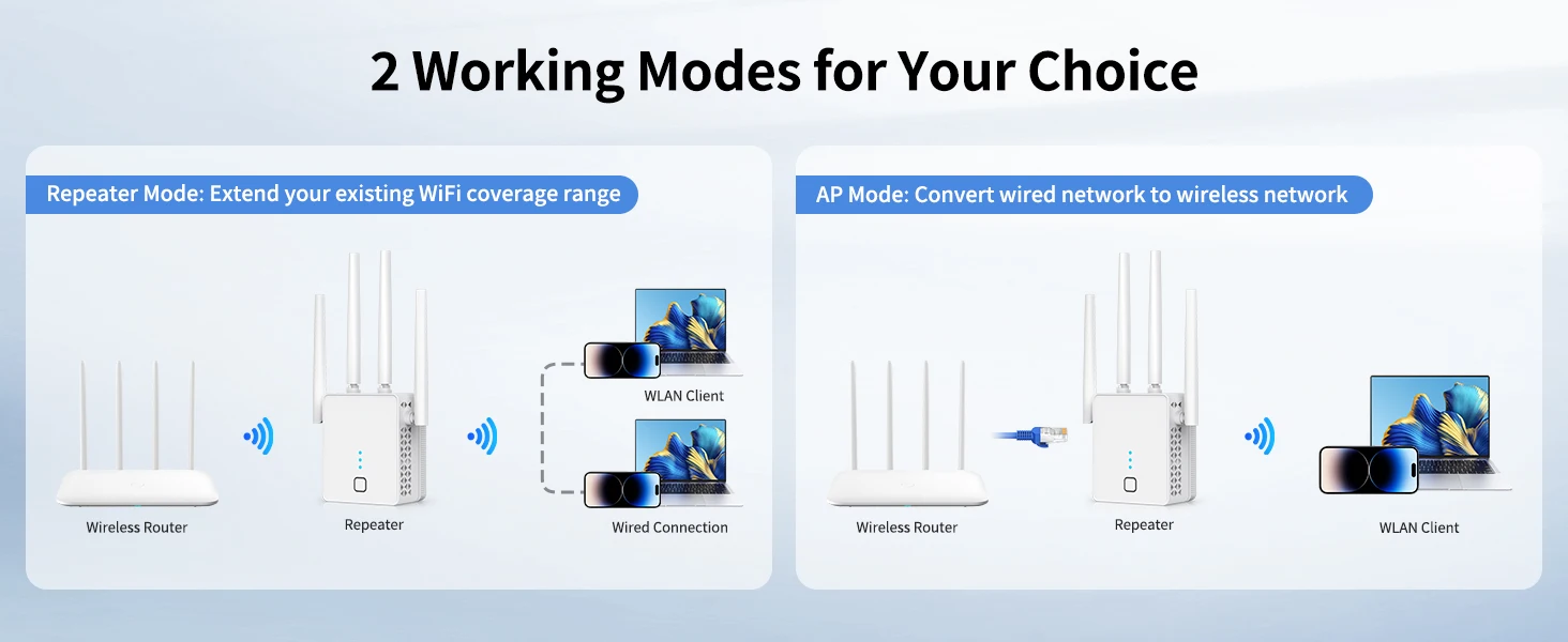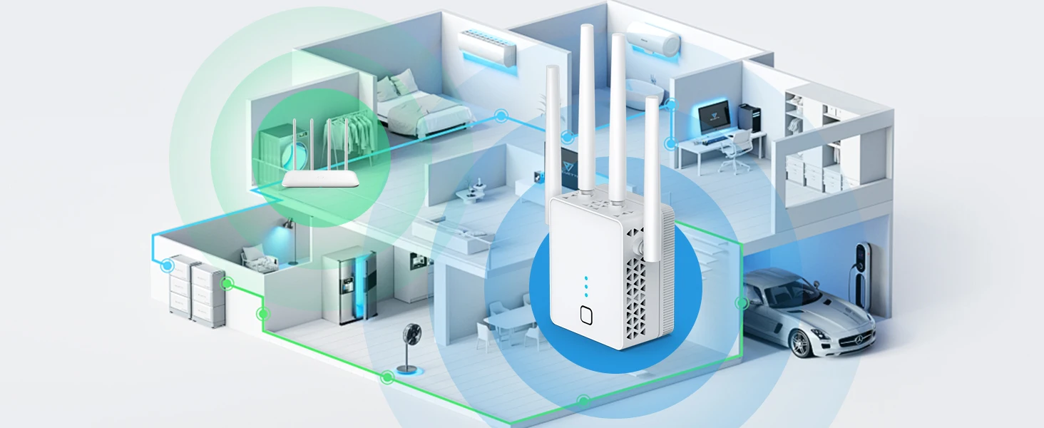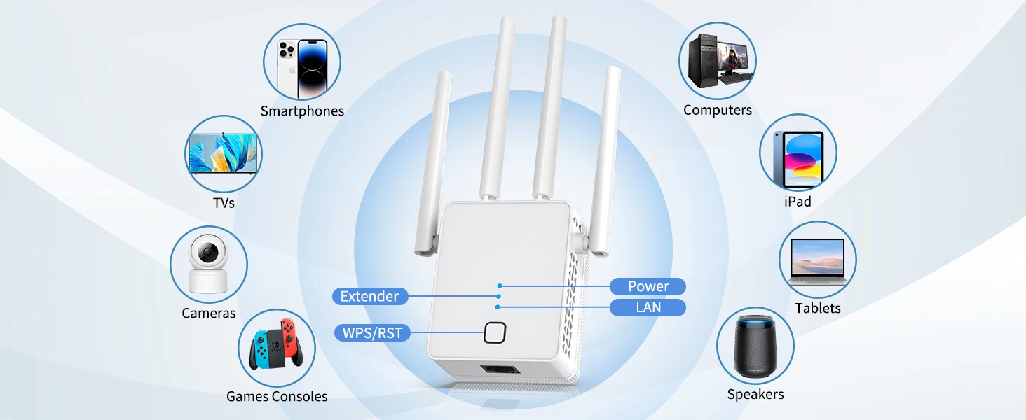 The wifi repeater is to help these devices with weak wifi signal at thelocation like kitchen, washing room, bed room, yard, garage, etc.