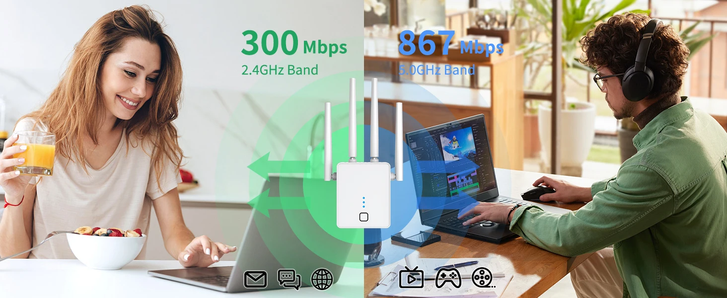 1.【Expand Your WiFi Range】: Wi-Fi range extender works for expanding WiFi signal of main router to further rooms, completely covers network dead zones with stronger signal, optimize your home wireless coverage.
